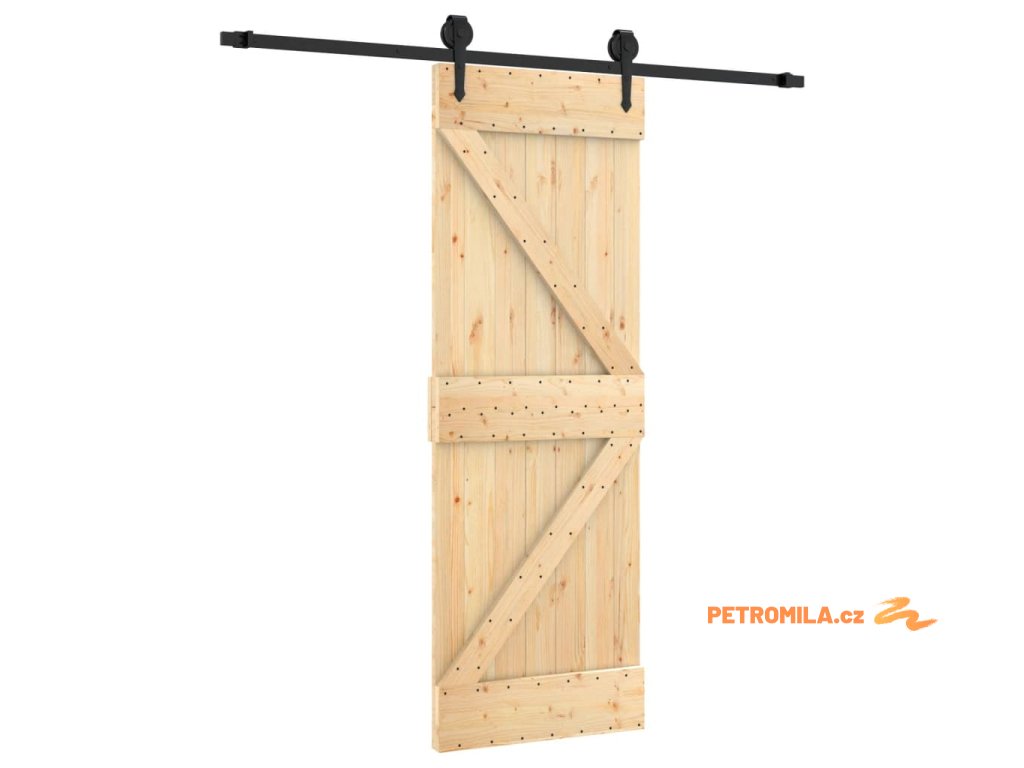 Posuvné dveře s kováním 70 x 210 cm masivní borové dřevo