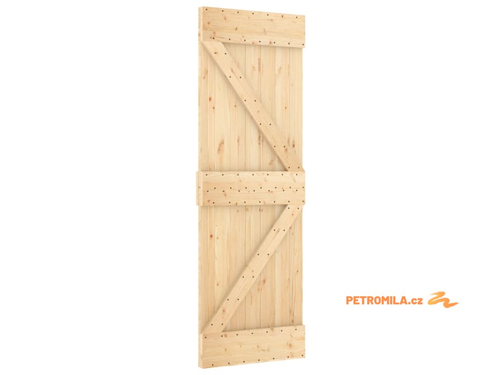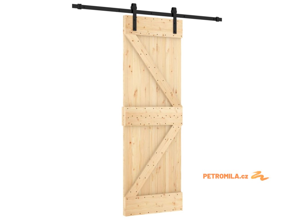 Posuvné dveře s kováním 70 x 210 cm masivní borové dřevo