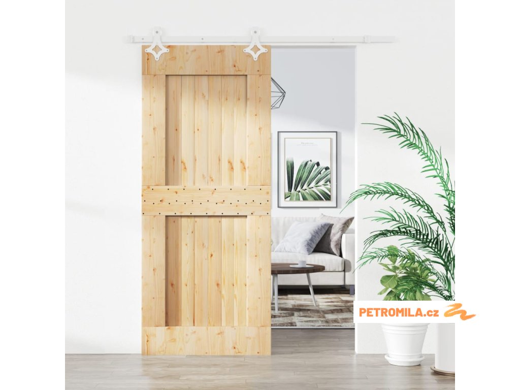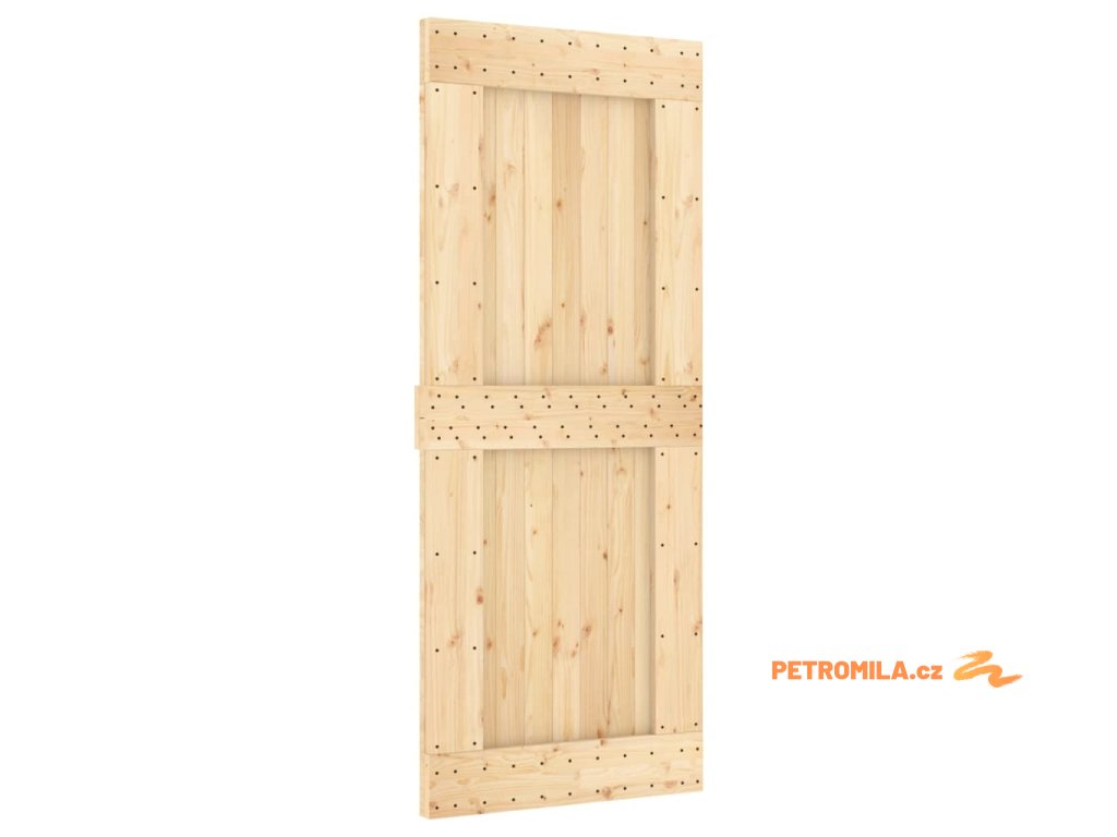 Posuvné dveře s kováním 85 x 210 cm masivní borové dřevo