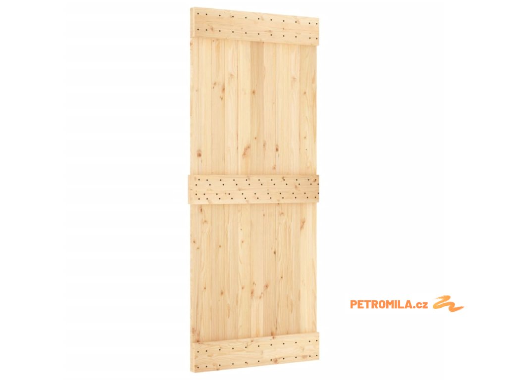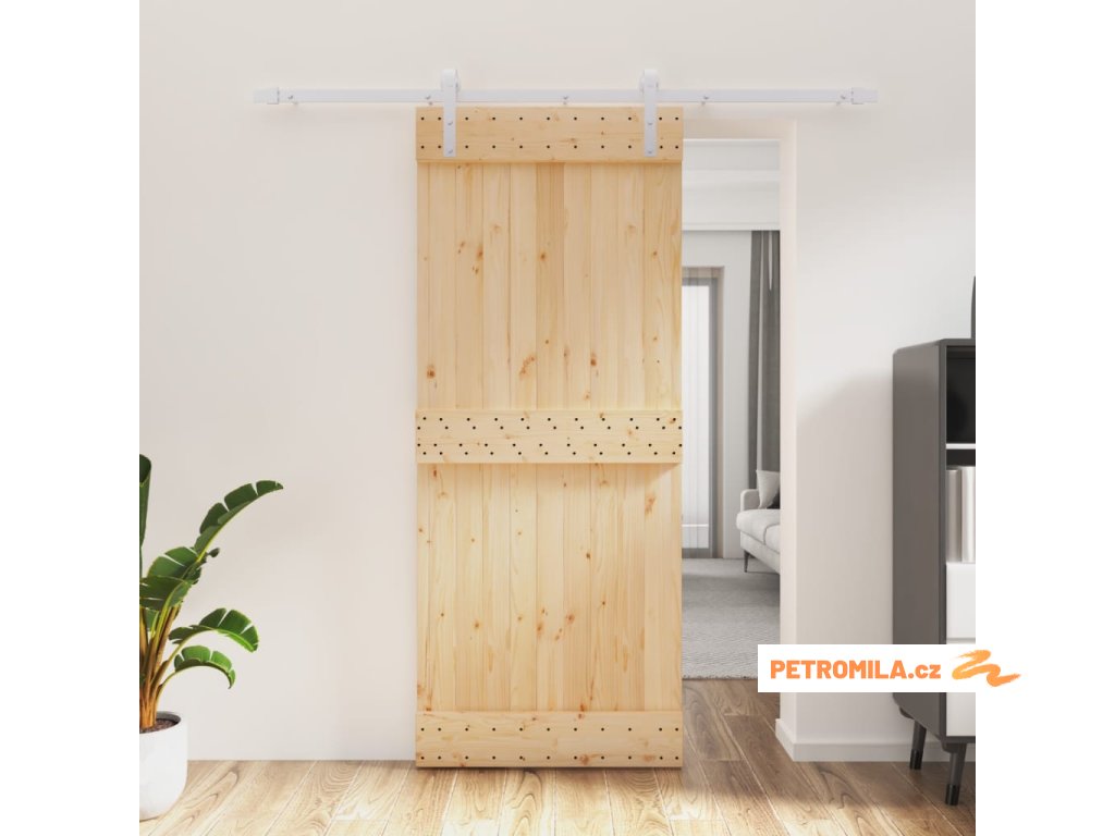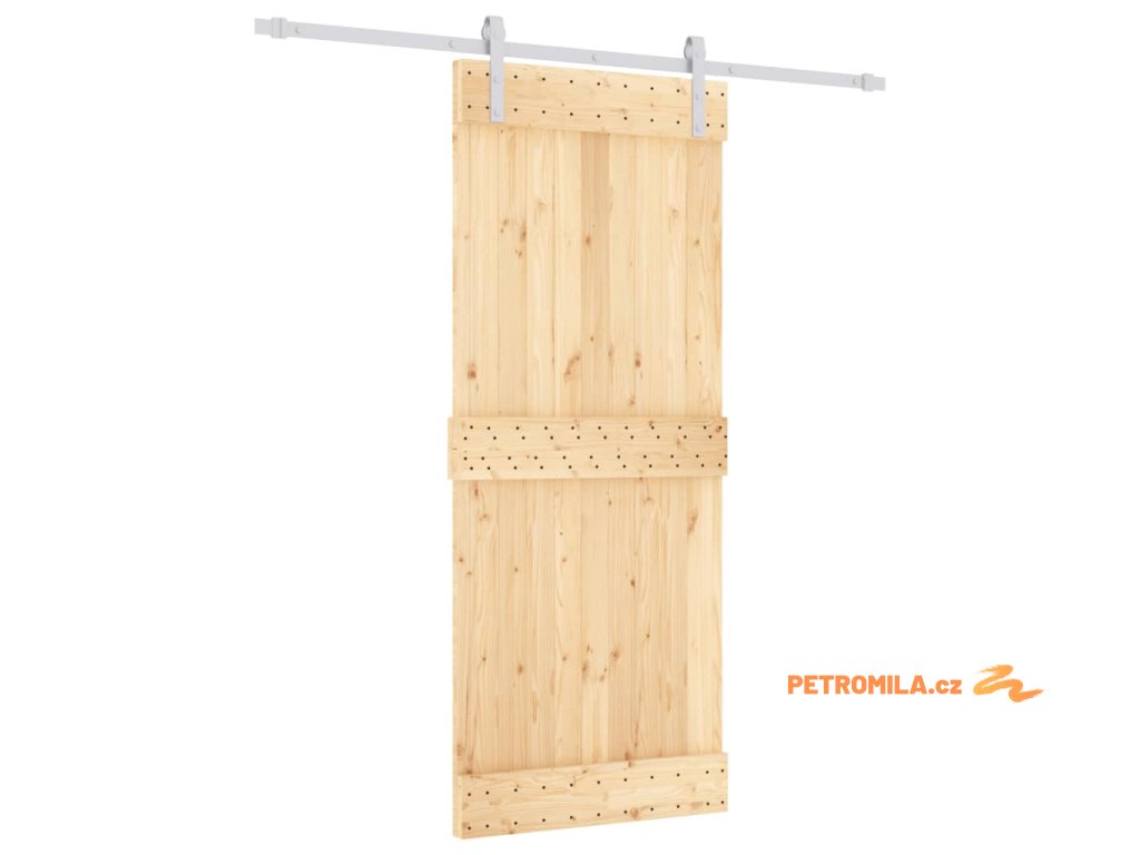 Posuvné dveře s kováním 85 x 210 cm masivní borové dřevo
