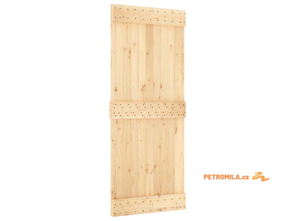 Posuvné dveře s kováním 85 x 210 cm masivní borové dřevo