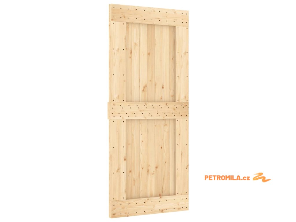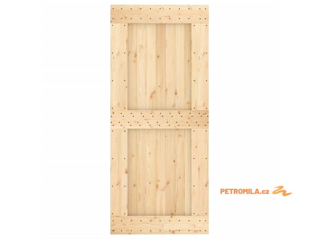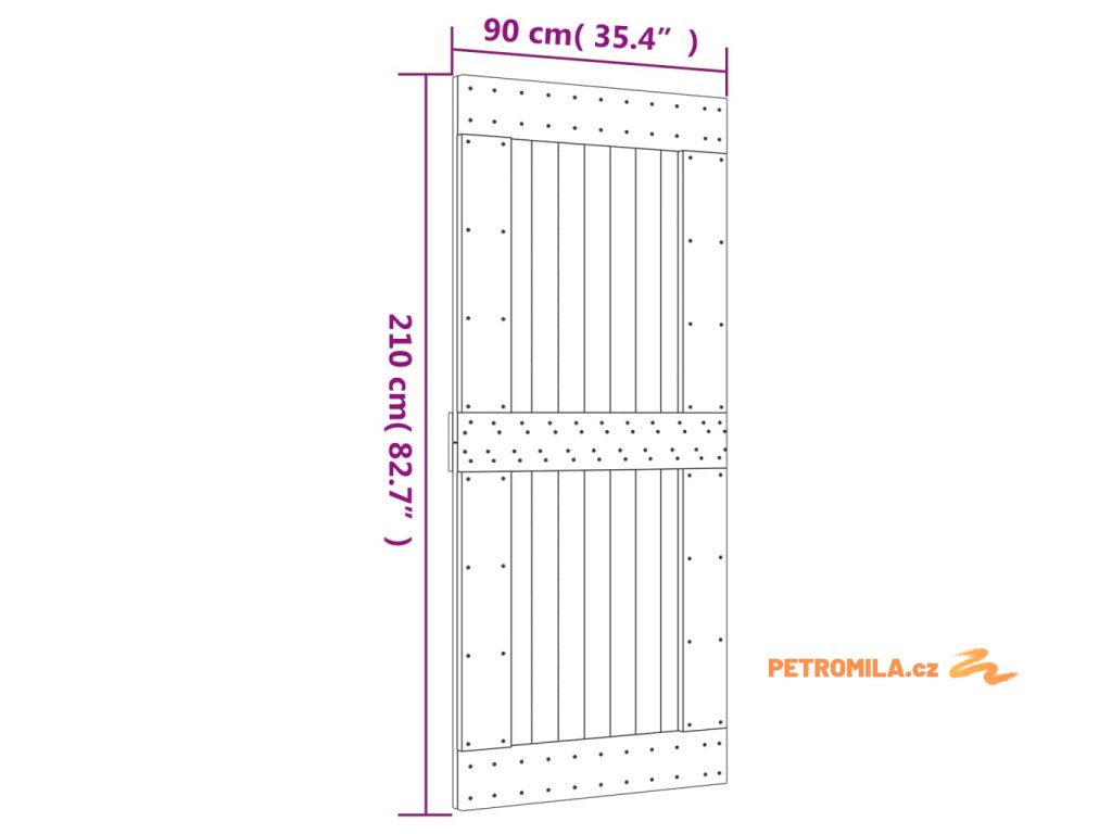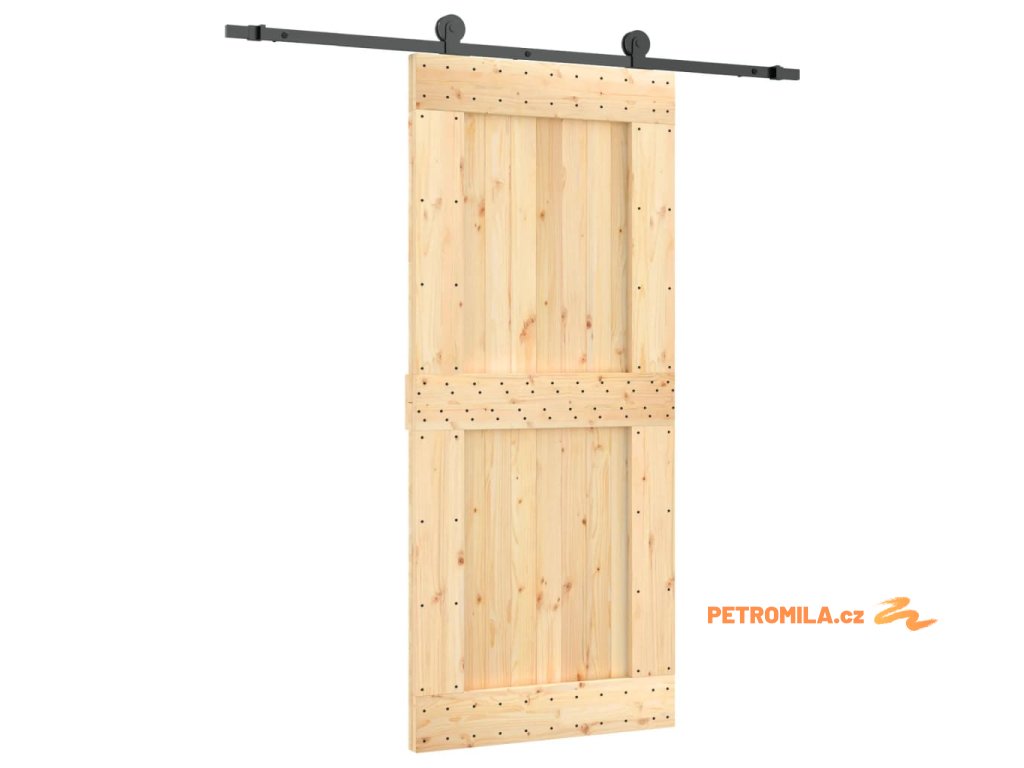 Posuvné dveře s kováním 90 x 210 cm masivní borové dřevo