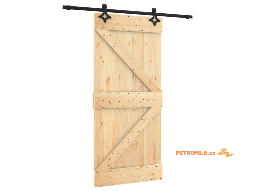 Posuvné dveře s kováním 95 x 210 cm masivní borové dřevo
