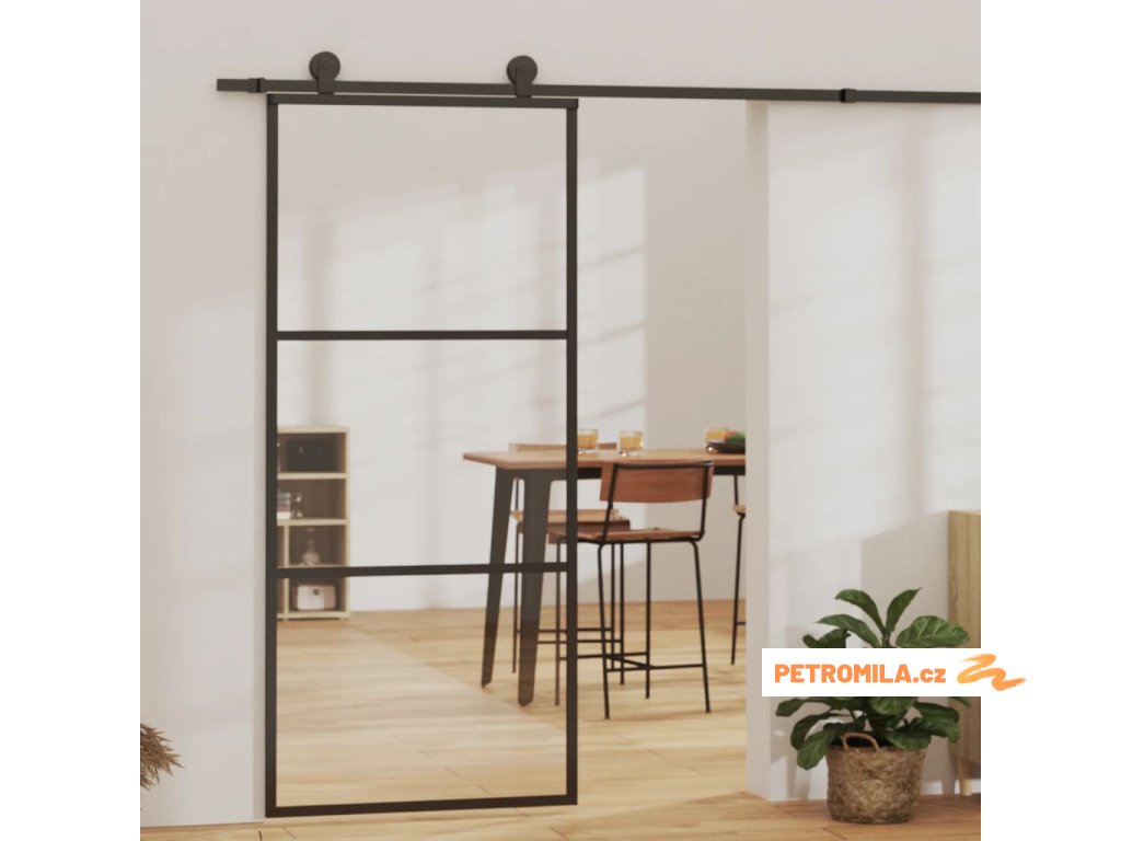 Posuvné dveře s kováním ESG sklo a hliník 90 x 205 cm