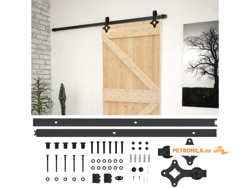 Posuvné dveře se setem kování 90 x 210 cm masivní borové dřevo