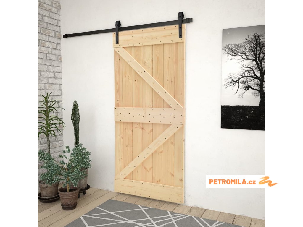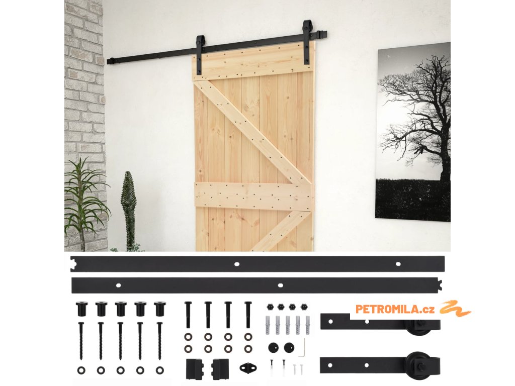 Posuvné dveře se setem kování 90 x 210 cm masivní borové dřevo