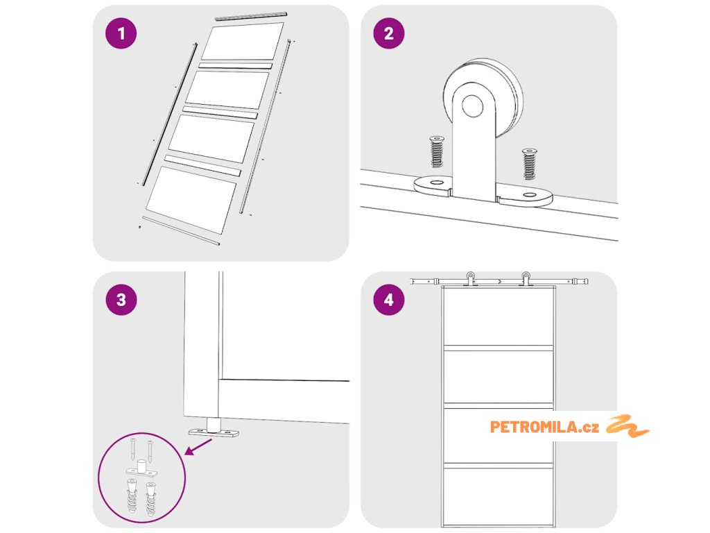 - Způsob instalace je vysvětlen v našem instalačním manuálu ke dveřím a sadám příslušenství.