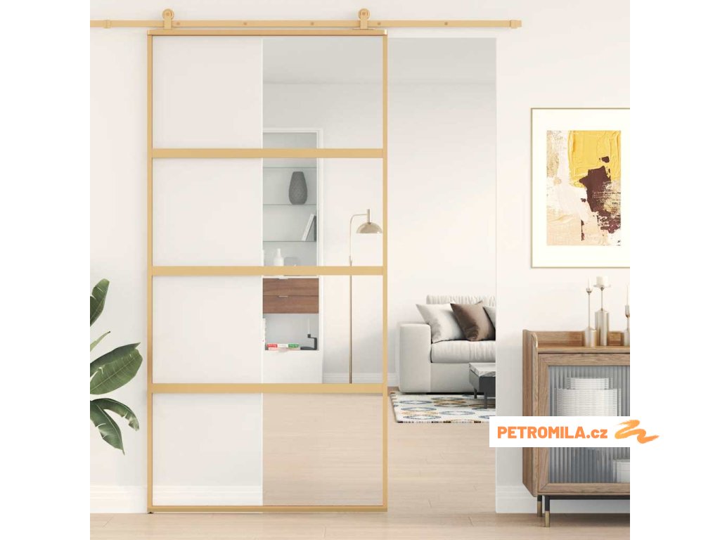 Posuvné dveře zlaté 102,5 x 205 cm čiré ESG sklo a hliník
