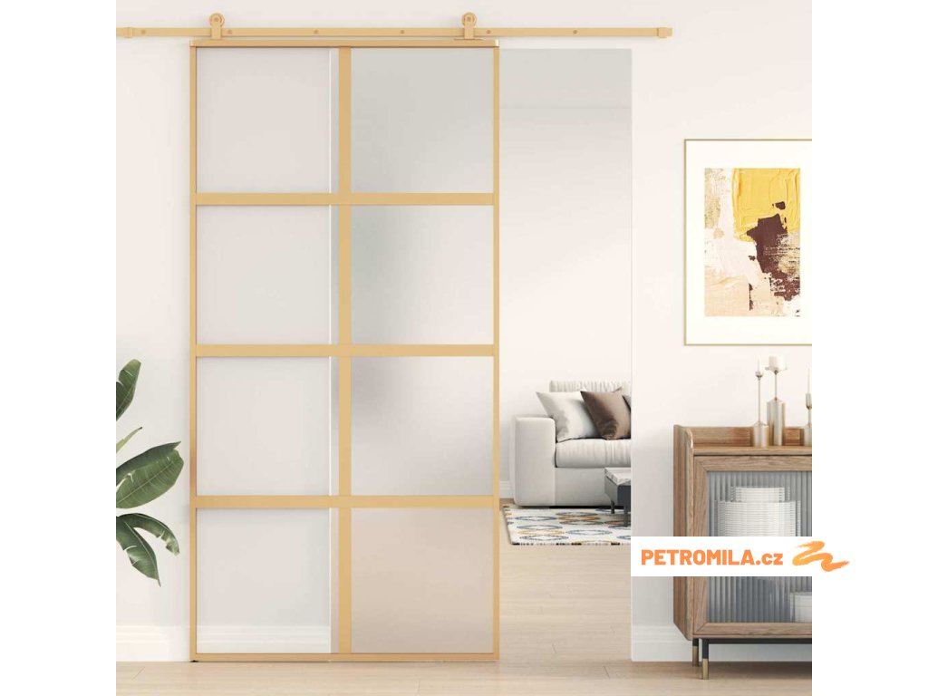 Posuvné dveře zlaté 102,5 x 205 cm mléčné ESG sklo a hliník