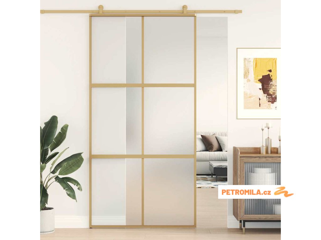 Posuvné dveře zlaté 102,5 x 205 cm mléčné ESG sklo a hliník