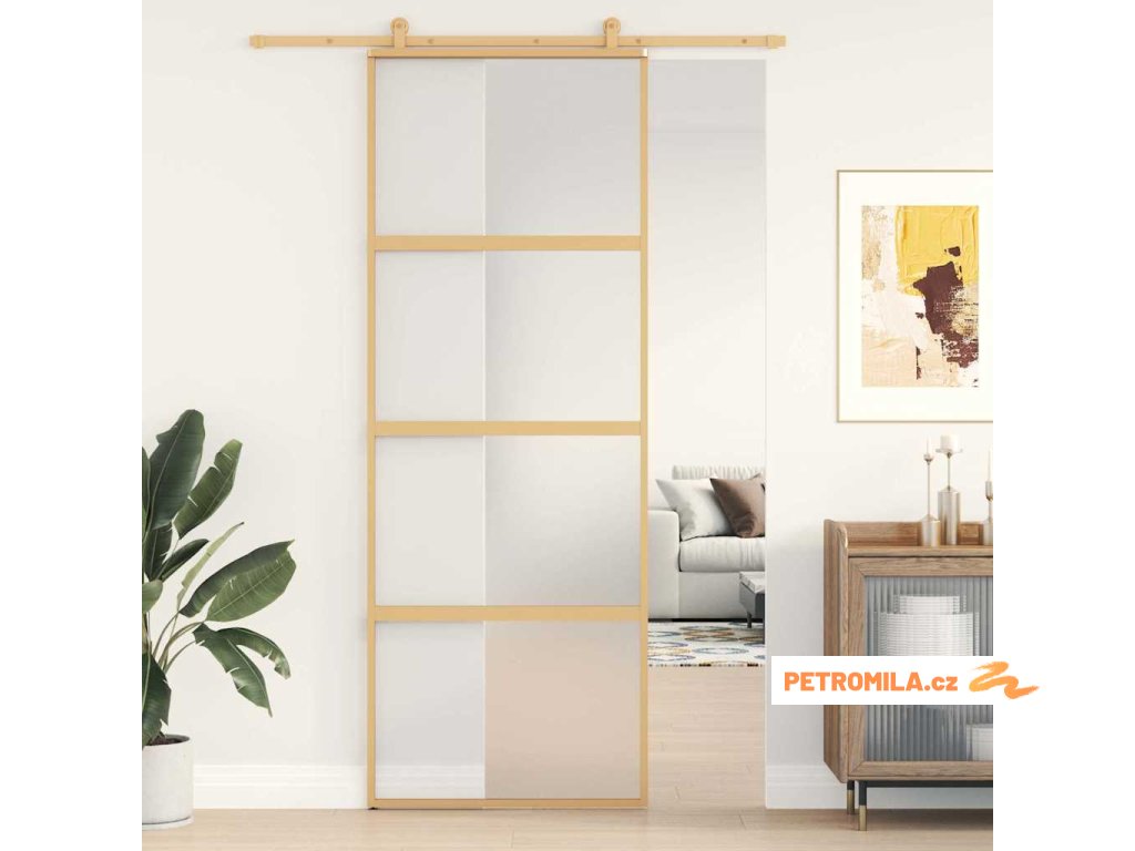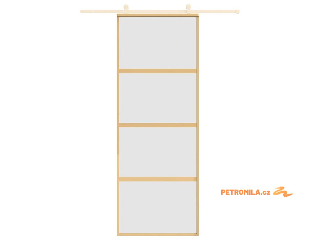 Posuvné dveře zlaté 76 x 205 cm mléčné ESG sklo a hliník