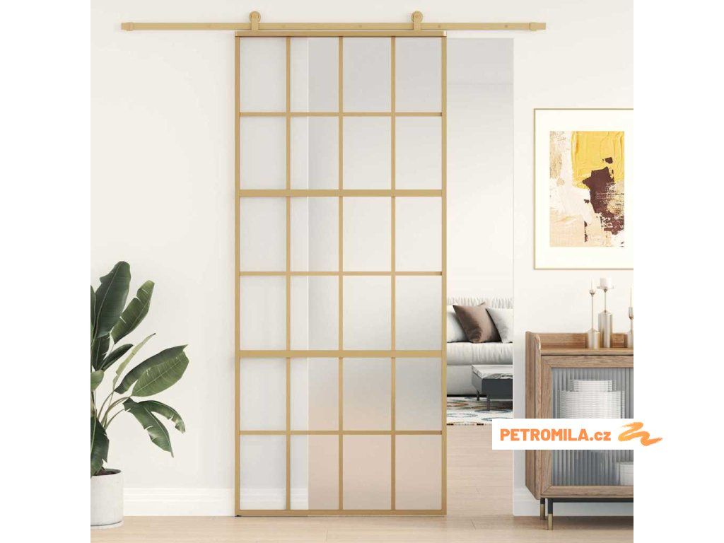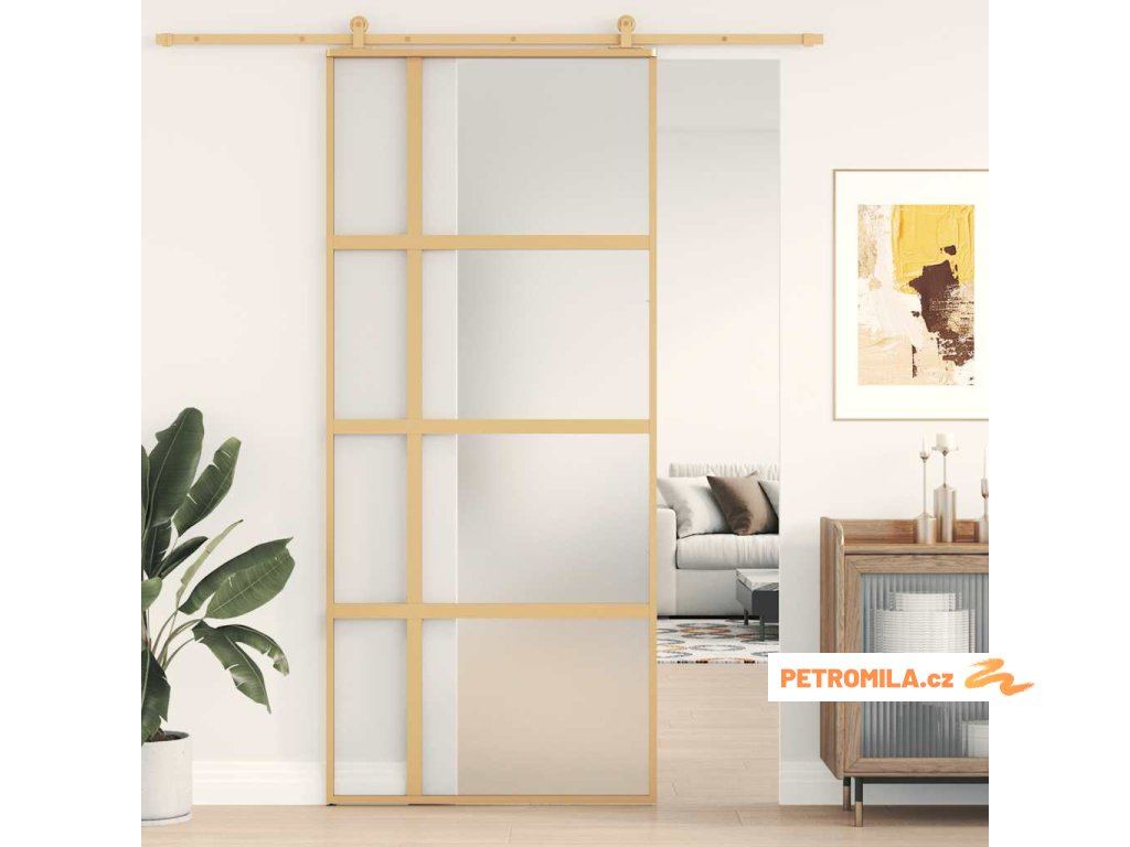 Posuvné dveře zlaté 90 x 205 cm mléčné ESG sklo a hliník