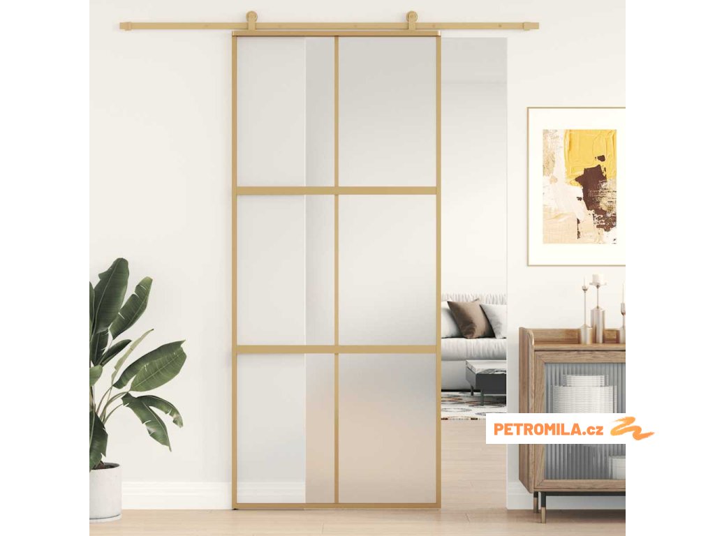 Posuvné dveře zlaté 90 x 205 cm mléčné ESG sklo a hliník