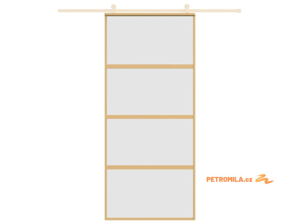 Posuvné dveře zlaté 90 x 205 cm mléčné ESG sklo a hliník