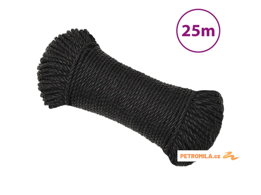 Pracovní lano černé 8 mm 25 m polypropylen