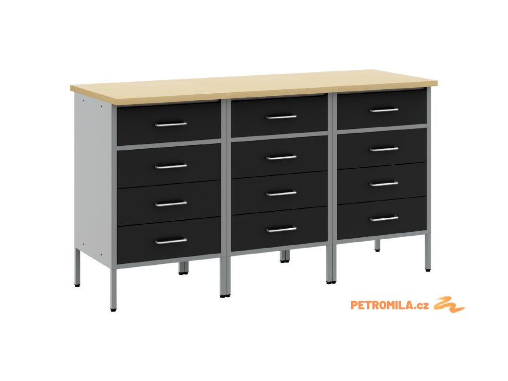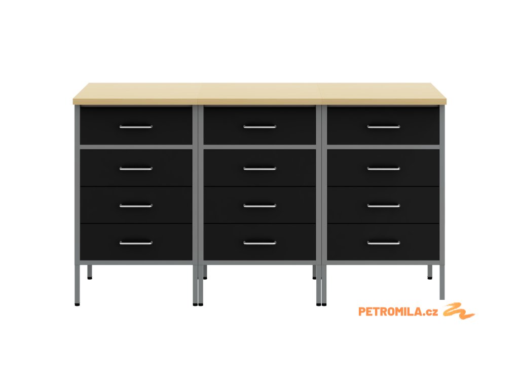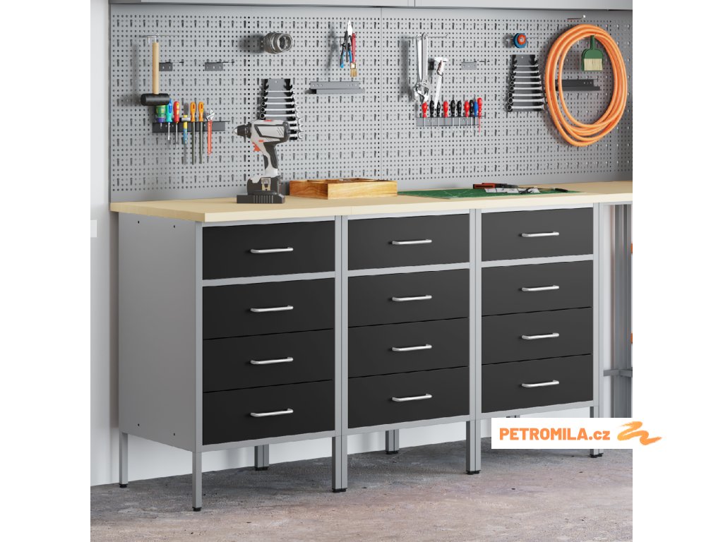 Pracovní skříň se zásuvkou 3 pcs Černá a šedá 150 x 55 x 85 cm