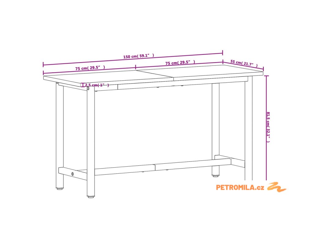 - Celkové rozměry: 150 x 55 x 81,5 cm (D x Š x V)