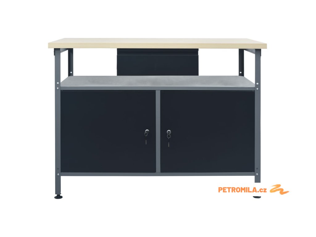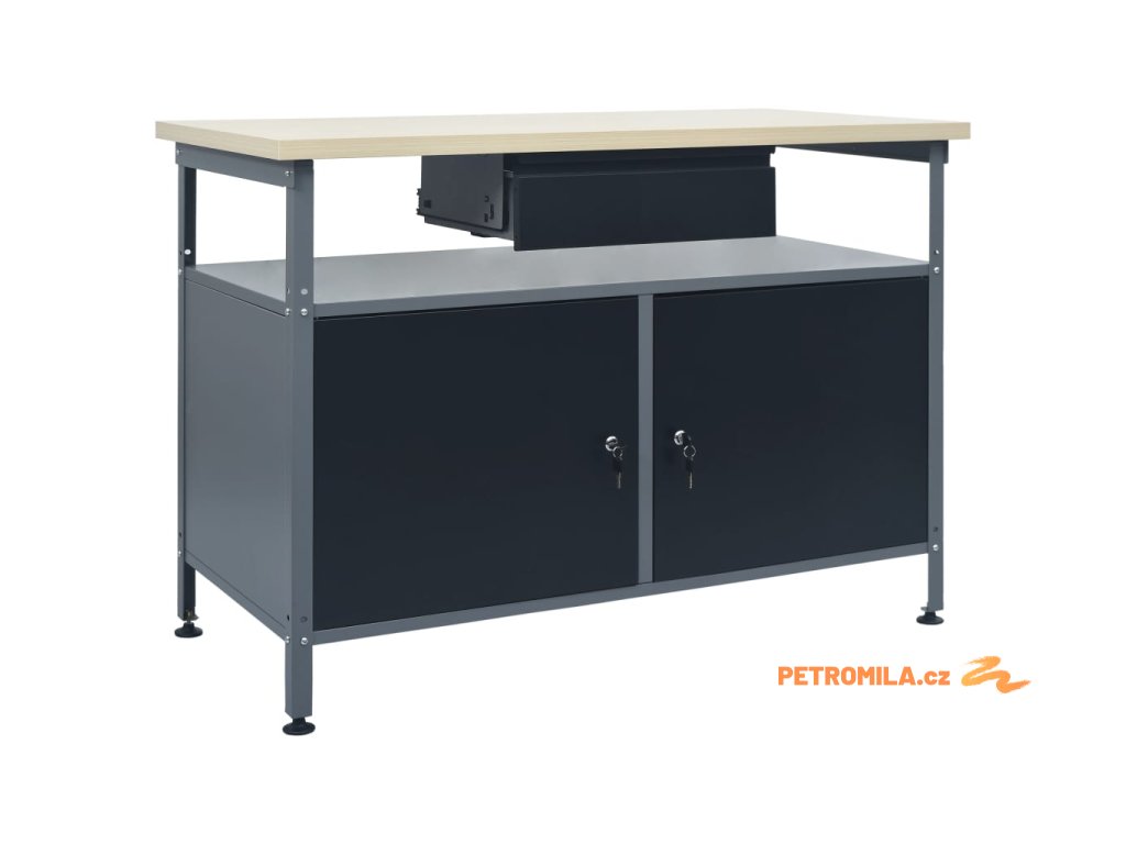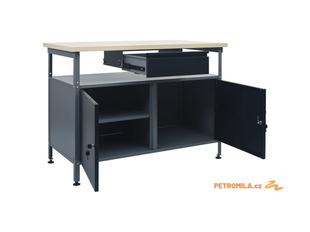 Prostorná a robustní stolní deska nabízí stabilní plochu pro všechny vaše opravářské práce. Pracovní stůl má otevřenou přihrádku s jednou zásuvkou, kde si můžete přehledně uspořádat nářadí, díly a příslušenství, jako jsou šrouby, hřebíky a lepicí pásky. K dispozici máte také šikovné přihrádky pro větší nástroje, které najdete ve 2 skříňkách s uzamykatelnými dvířky. Snadno a bezpečně si sem uložíte vrtačky, kabely a brusky.