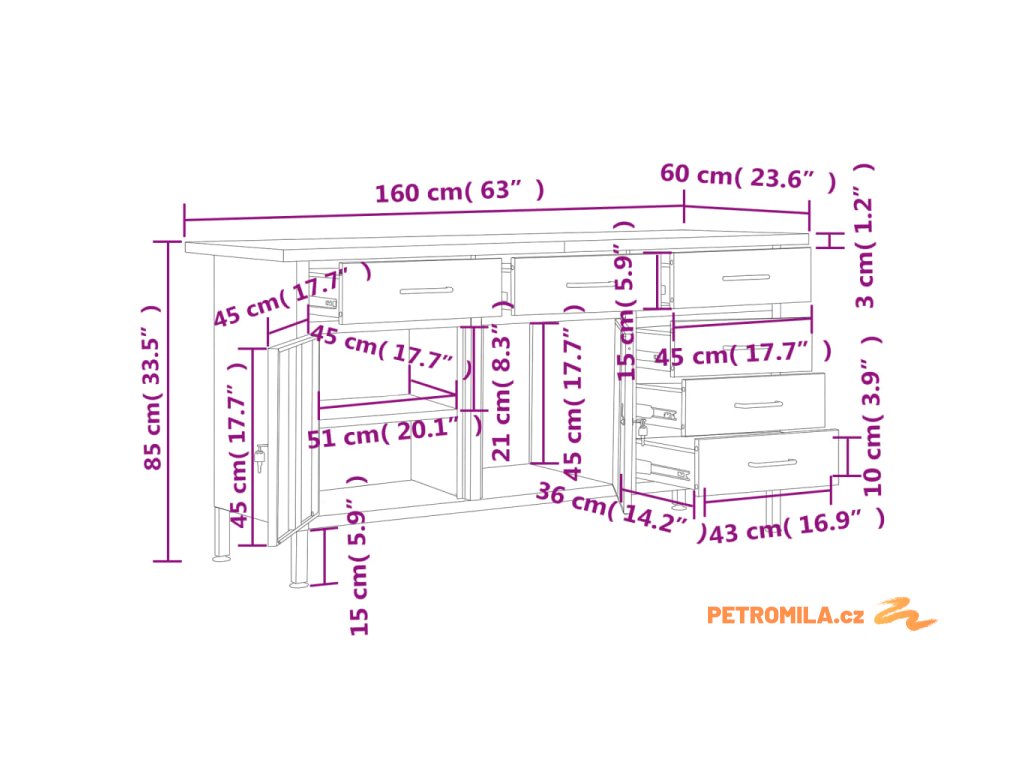 - Rozměry: 160 x 60 x 85 cm (D x Š x V)