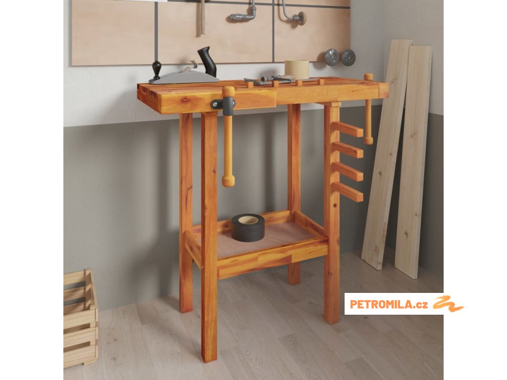Pracovní stůl se svěráky 92 x 48 x 83 cm masivní akáciové dřevo