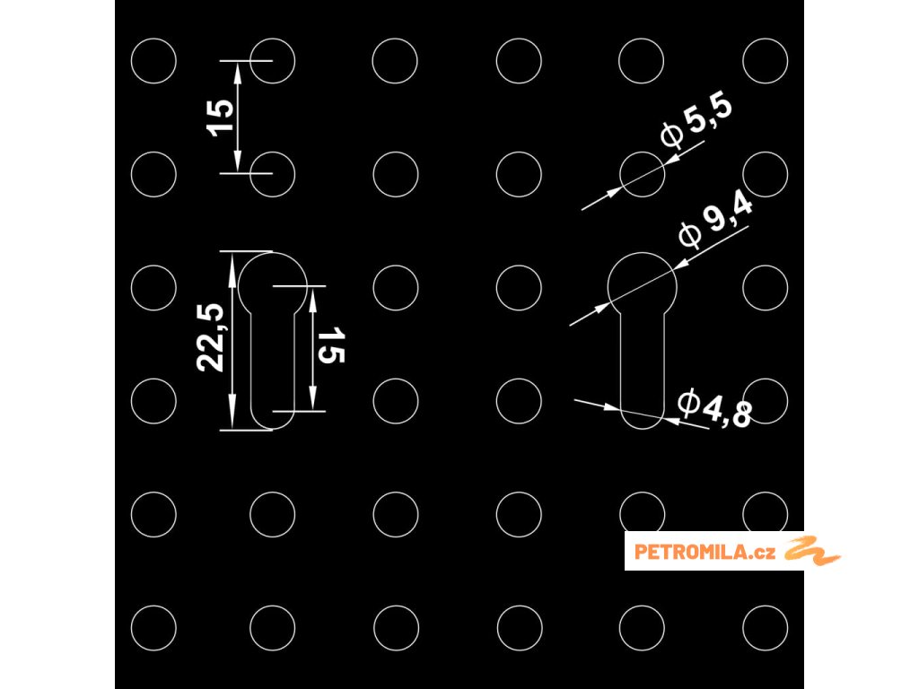 - Rozměry nekulatých otvory: 9,4 x 22,5 mm (Š x V)
