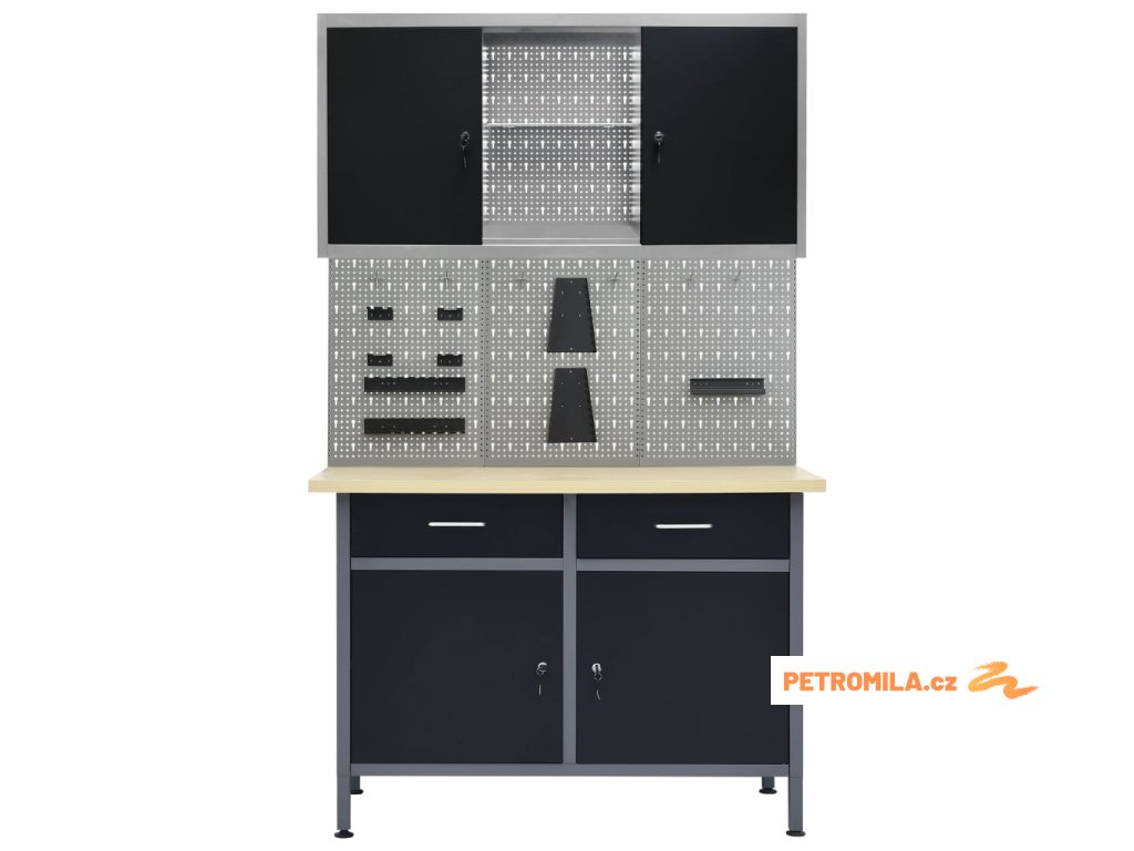 Tato dílenská sada 1 pracovního stolu se 3 nástěnnými panely a 1 nástěnnou skříňkou je praktické úložné řešení pro vaši dílnu a garáž.