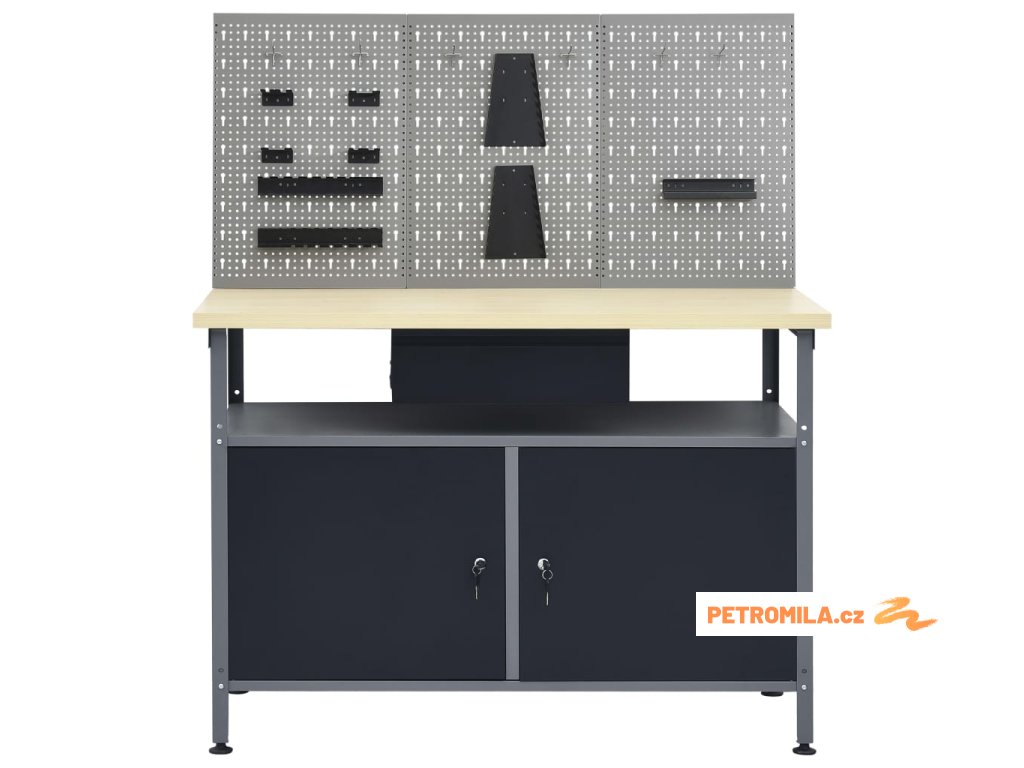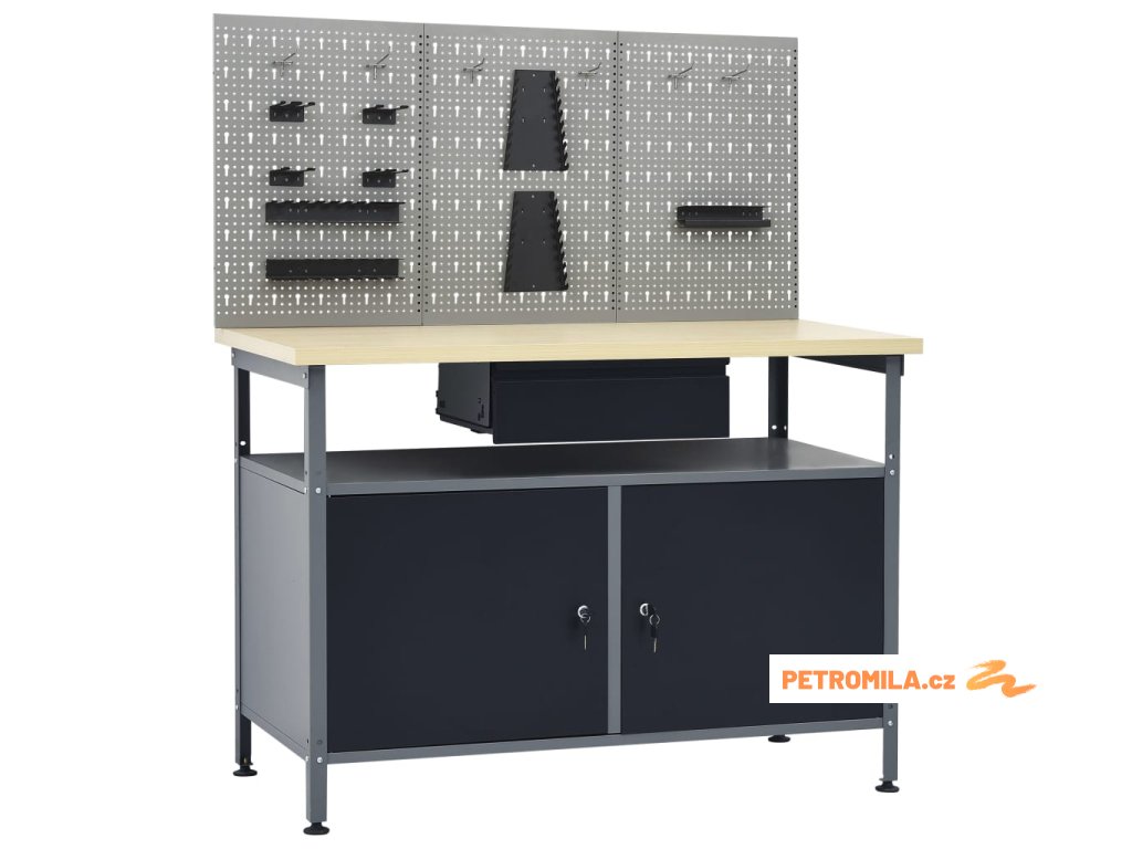Tato dílenská sada s pracovním stolem a 3 nástěnnými panely představuje praktické úložné řešení do vaší dílny nebo garáže.