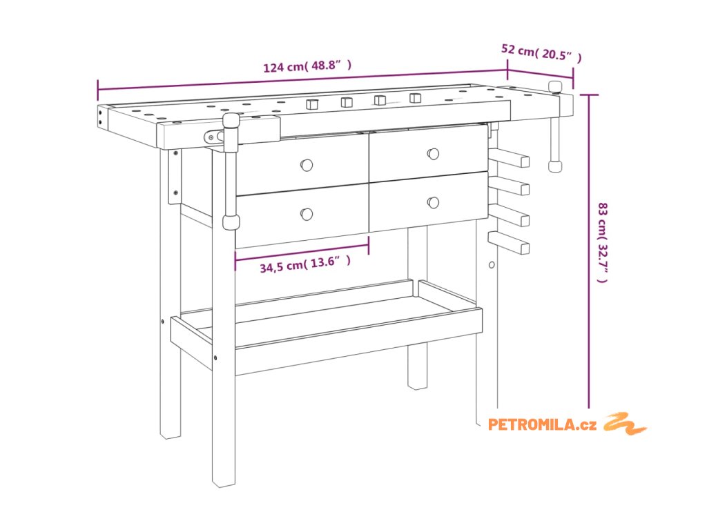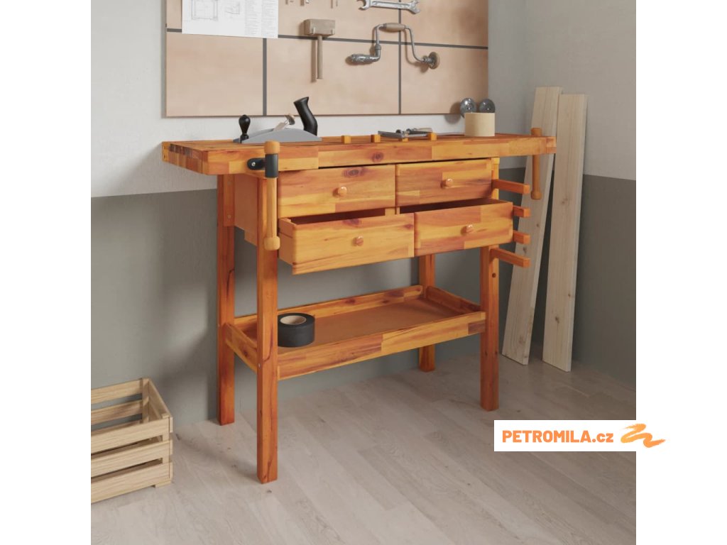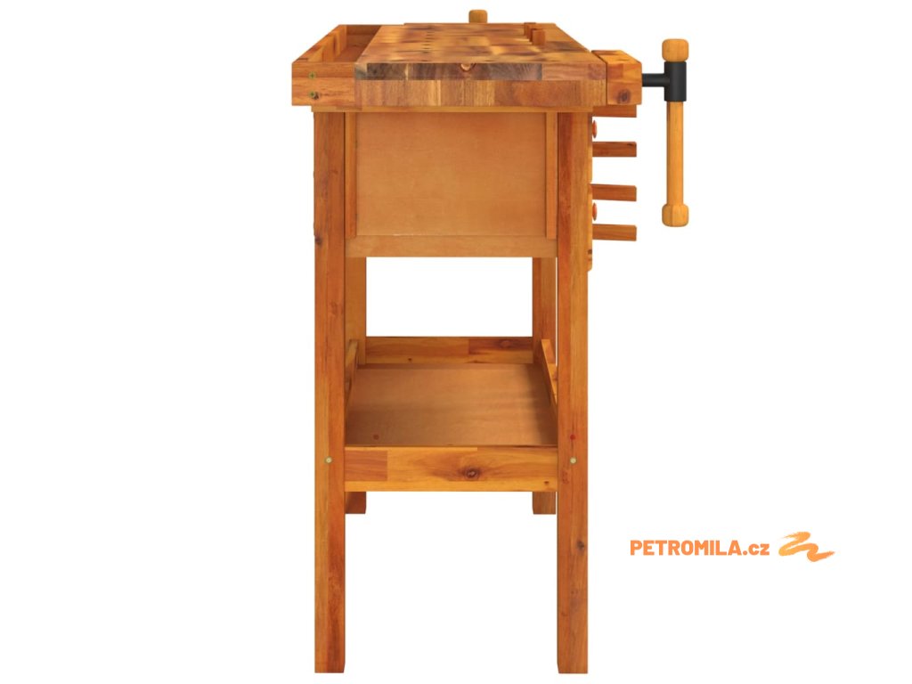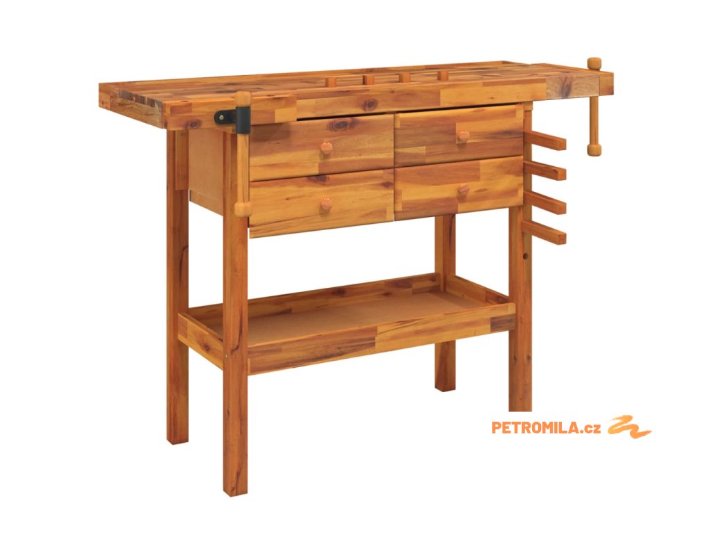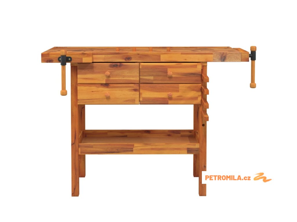 Pracovní stůl se zásuvkami a svěráky 124x52x83cm masivní akácie