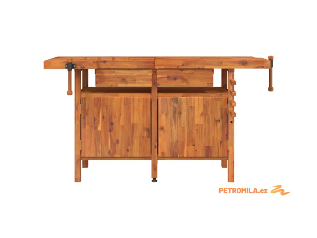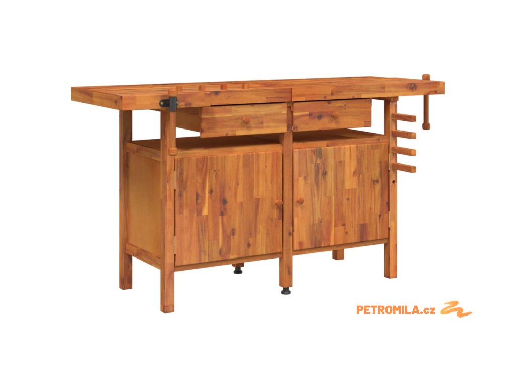 Pracovní stůl se zásuvkami a svěráky 162x62x83cm masivní akácie