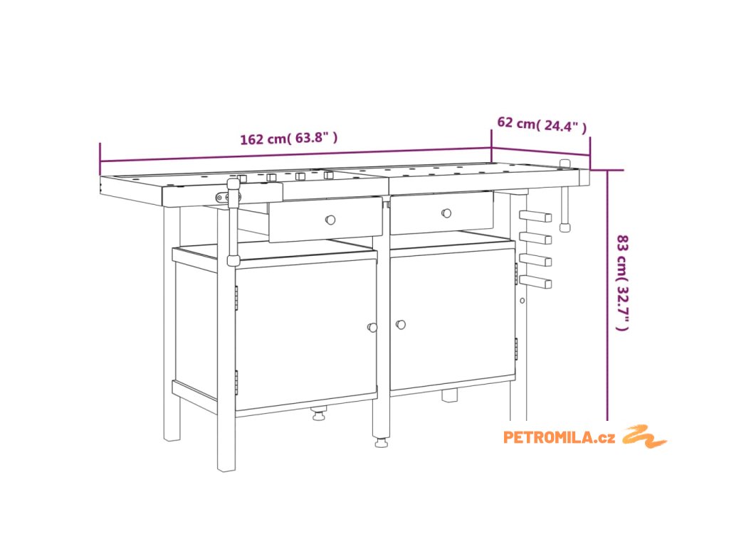 - Dostatek úložného prostoru: Tato pracovní stanice se 2 úložnými zásuvkami a 1 velkou přihrádkou s dvířky poskytuje dostatek úložného prostoru, abyste měli nářadí přehledně uspořádané a po ruce.