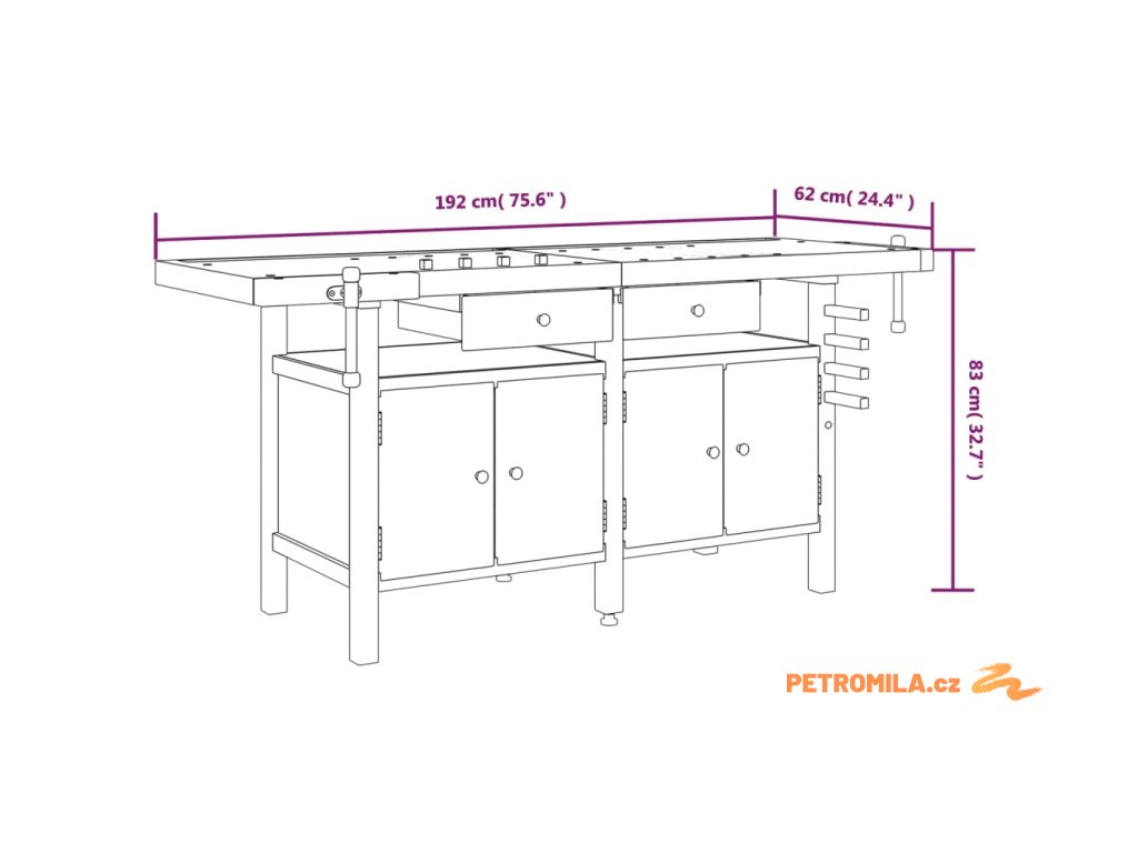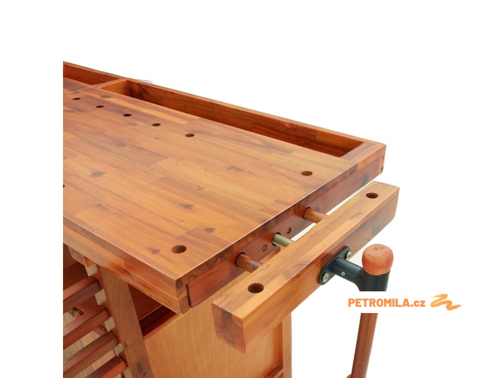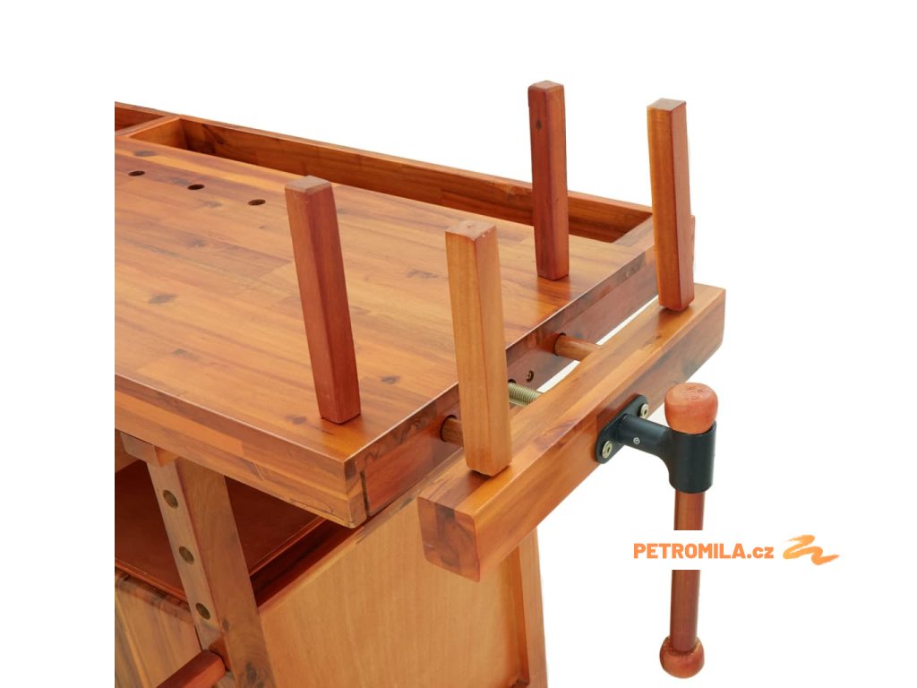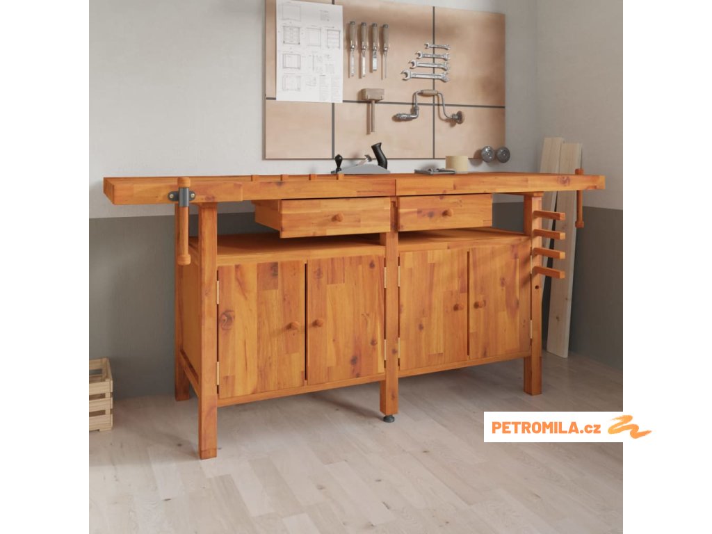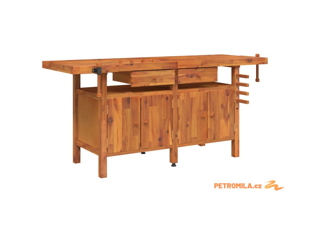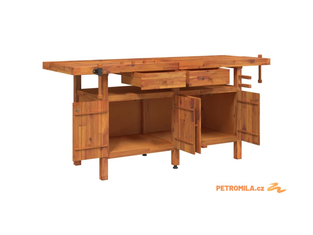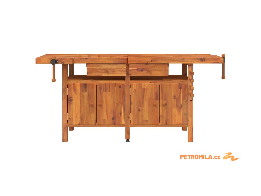 Pracovní stůl se zásuvkami a svěráky 192x62x83cm masivní akácie