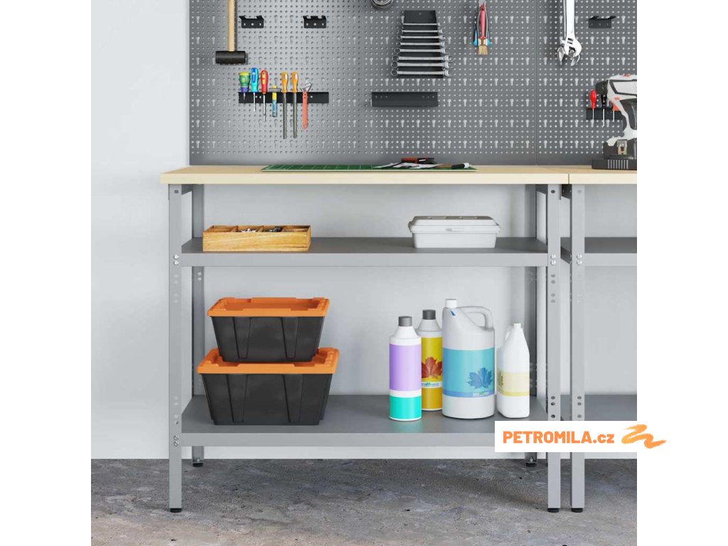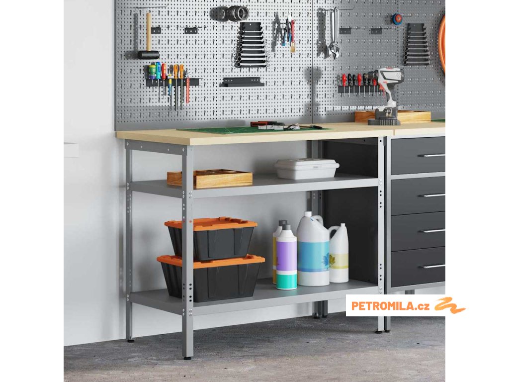 - Součásti: Kovové police nabízejí spoustu místa na vaše nářadí a příslušenství. Jsou pevné a spolehlivé, což zvyšuje efektivitu pracovního prostoru.