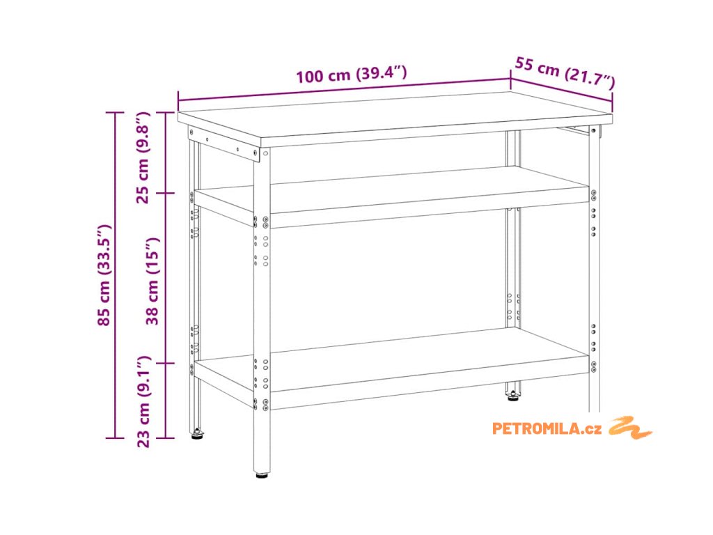 - Funkce / Účel / Design: Nastavitelné nohy stolu se přizpůsobí nerovným povrchům, čímž zajistí stabilitu a pohodlí. Díky tomu se můžete soustředit na svou práci, aniž byste se museli bát o bezpečnost v dílně.