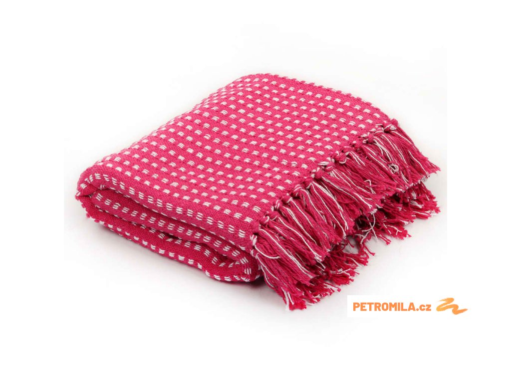 Přehoz bavlněný čtverečky 125 x 150 cm růžový
