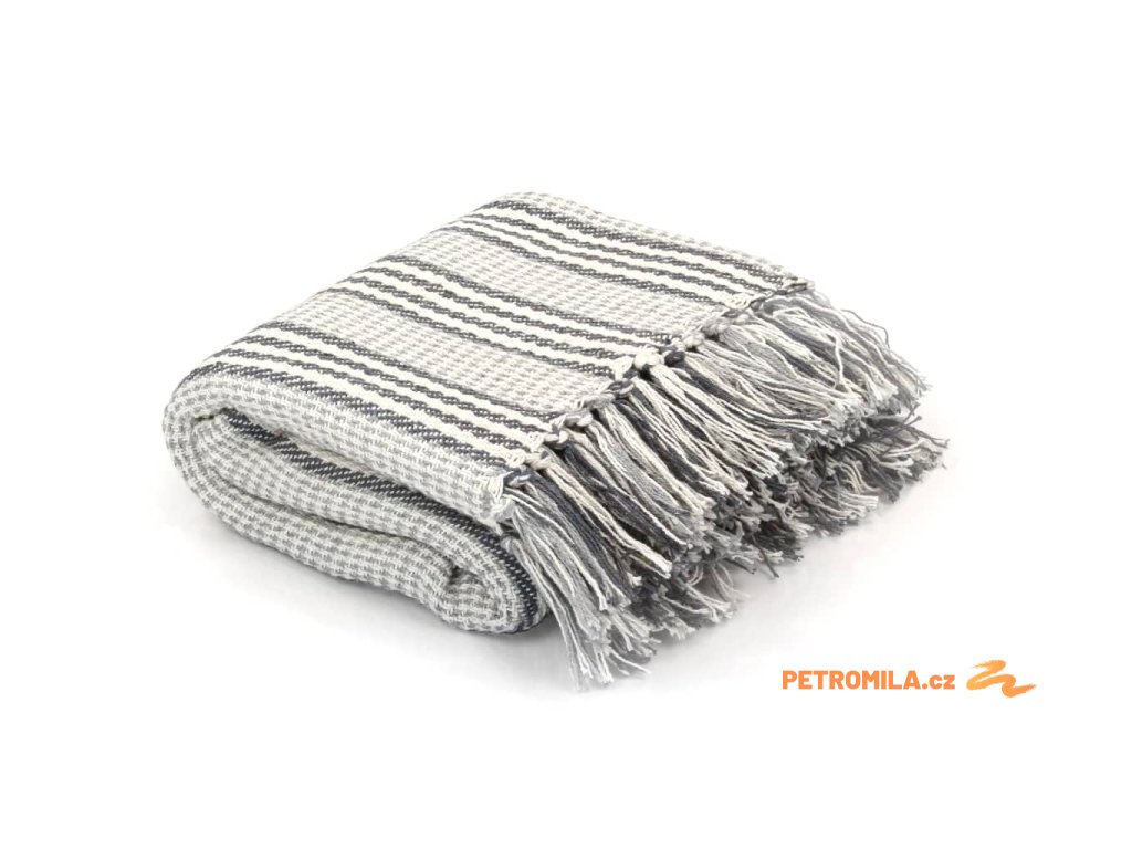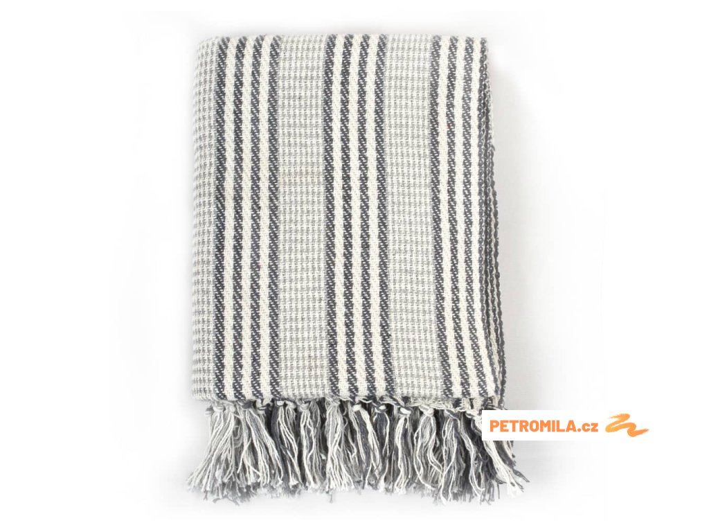 Přehoz bavlněný pruhy 125 x 150 cm šedo-bílý