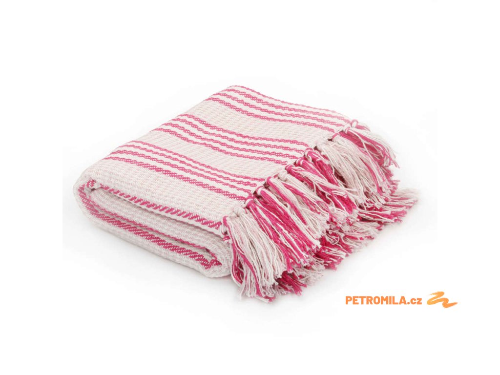 Přehoz bavlněný pruhy 220 x 250 cm růžovo-bílý
