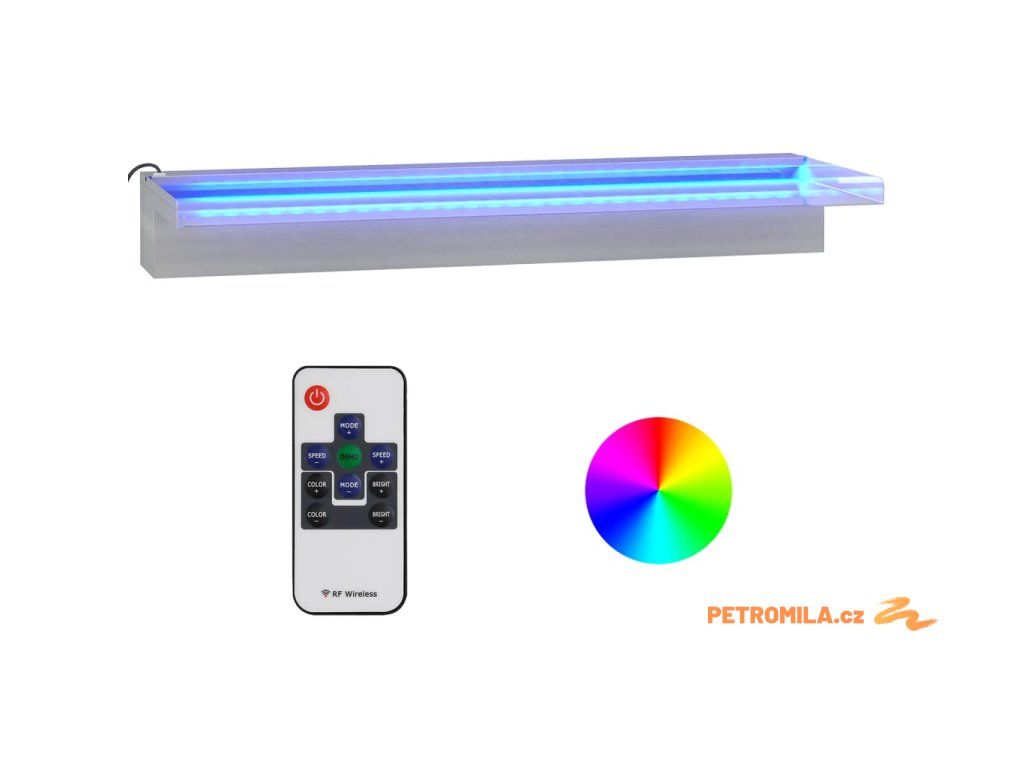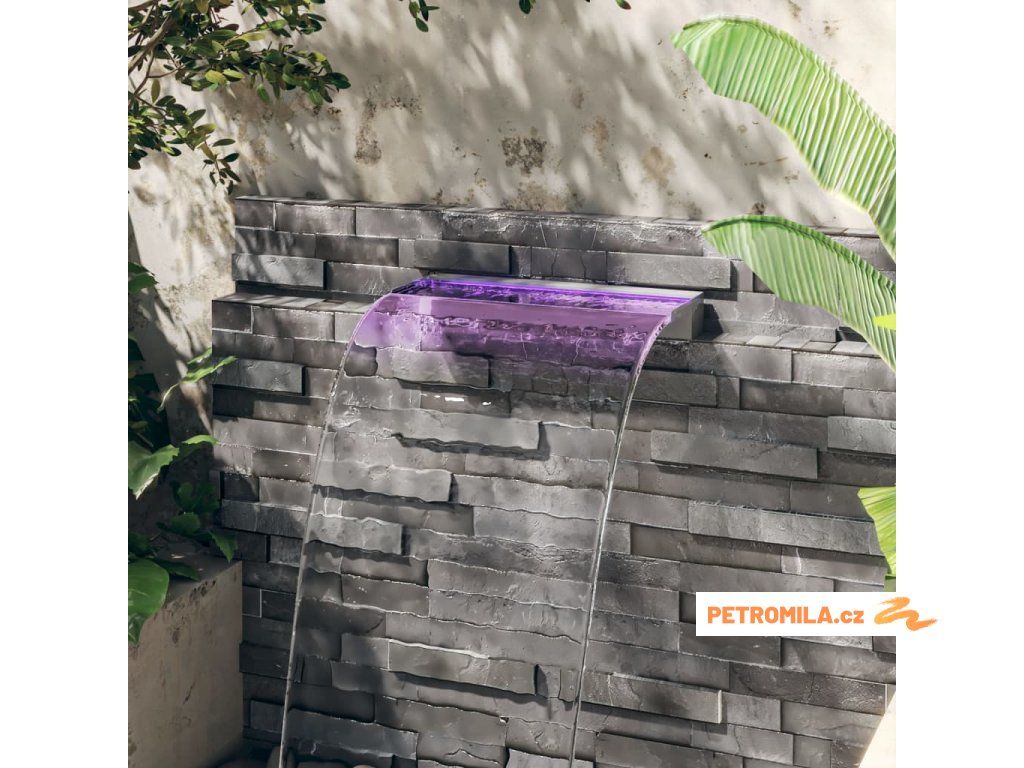 Přelivový vodopád s RGB LED osvětlením nerezová ocel 60 cm