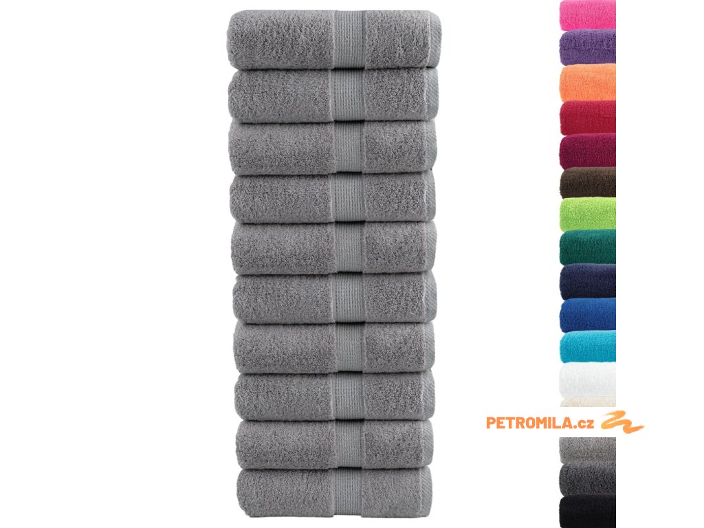 Prémiové ručníky pro hosty SOLUND 10 ks šedé 30x50 cm 600 g/m²