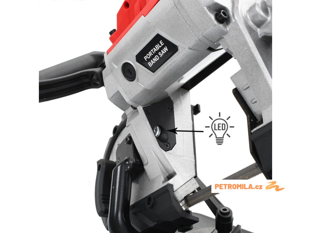 Pásová pila z vysoce odolné oceli má velmi dlouhou životnost. Ochranný ocelový kryt, plastové nárazníky a pracovní LED světlo umožňují uživateli bezpečně zdolat náročné práce na pracovišti. Max. kapacita 12,7 x 12,7 cm umožní řezat většinu běžných materiálů, jako je ocel, železo, hliník, měď, nerezová ocel, PVC a teflon. Pokud potřebujete řezat do kovu s tvrdostí vyšší než 40, jako je ocel, železo, měď a nerezová ocel, nastavte rychlost řezání na nižší úroveň č. 3 (přibližně 1–1,2 m/s). Pila je vybavená ostrou čepelí TPI 14 a extra odolnou kovovou základnou, takže snadno podá maximální výkon. Možnost nastavení rychlosti a praktická rukojeť umožňují snadné ovládání této elektrické pásové pily.