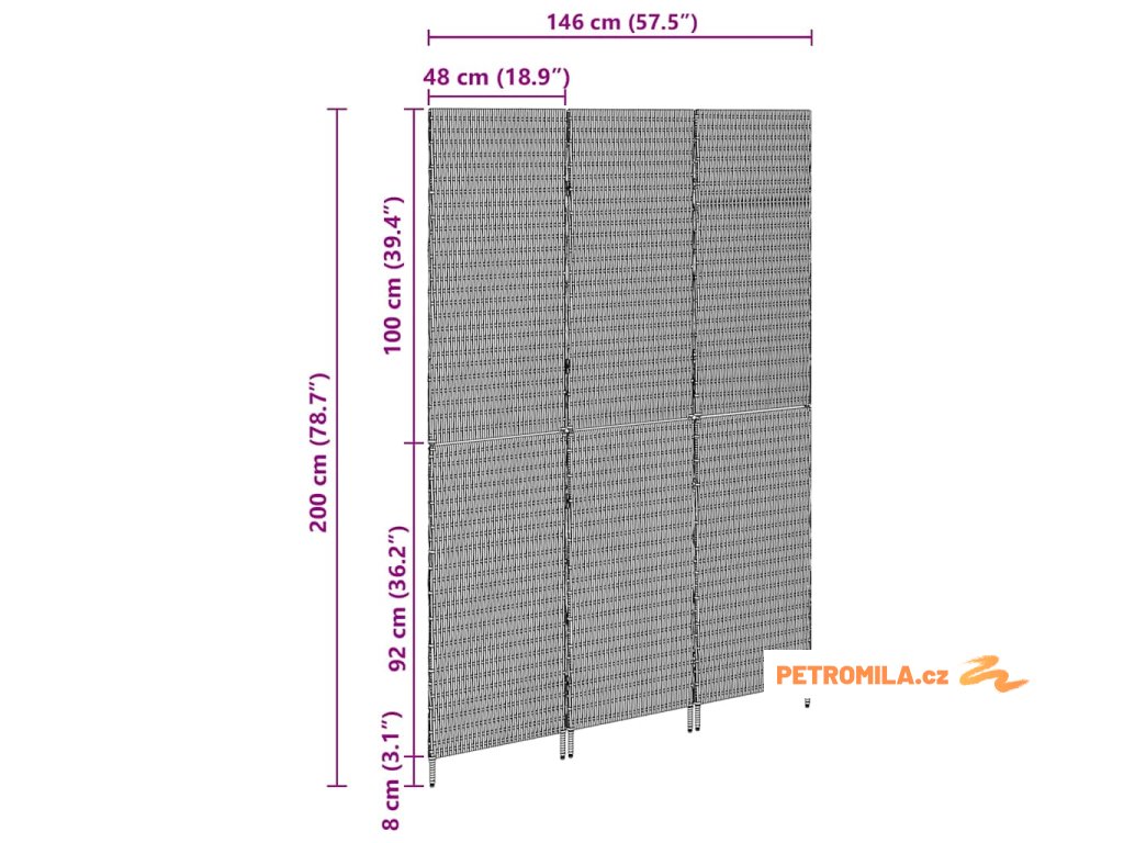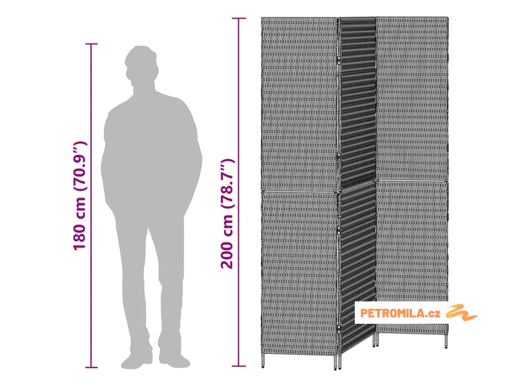 Tento skládací paraván z poly ratanu je skvělý způsob, jak si trochu přidat soukromí doma. Díky modernímu designu a čistým liniím se hodí do každého obývacího prostoru. Je vyroben z poly ratanu, který odolává UV záření, a má robustní práškově lakovanou ocel, takže dlouho vydrží. Obdélníkový tvar nabízí spoustu možností umístění, ať už chcete vytvořit útulné studio nebo vymezit pracovní prostor ve větší místnosti.