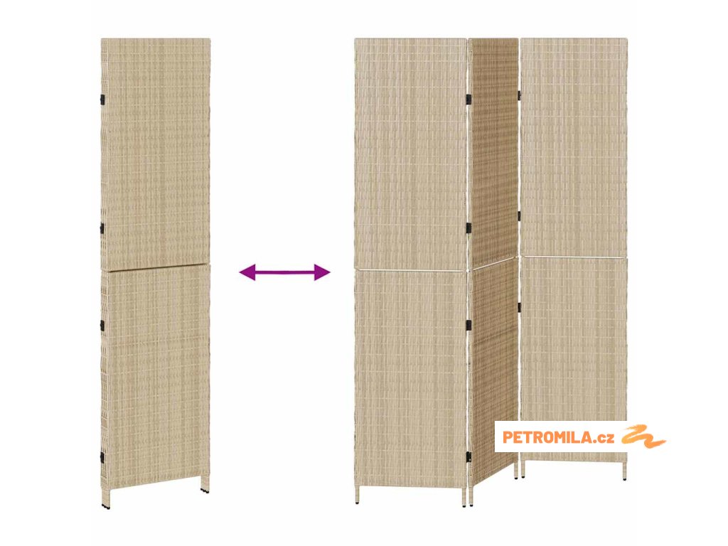 Tento skládací paraván z poly ratanu je skvělý způsob, jak si trochu přidat soukromí doma. Díky modernímu designu a čistým liniím se hodí do každého obývacího prostoru. Je vyroben z poly ratanu, který odolává UV záření, a má robustní práškově lakovanou ocel, takže dlouho vydrží. Obdélníkový tvar nabízí spoustu možností umístění, ať už chcete vytvořit útulné studio nebo vymezit pracovní prostor ve větší místnosti.