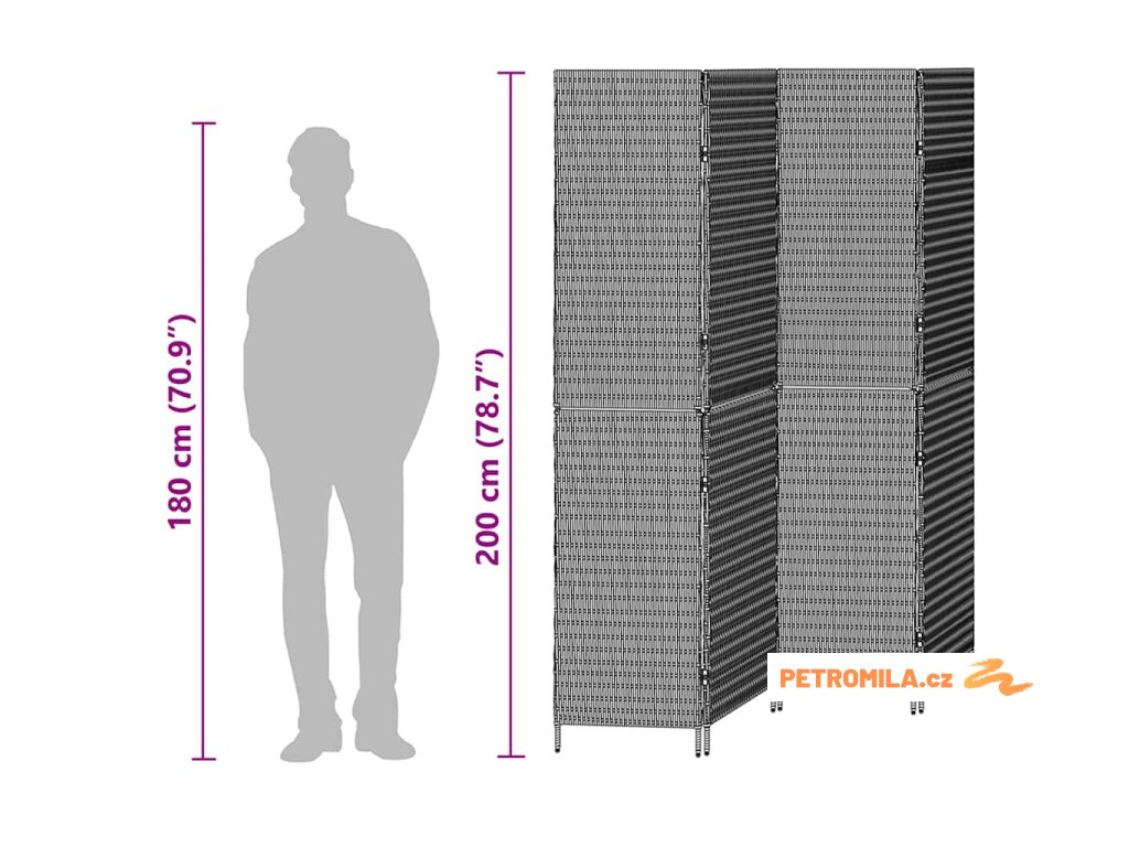 Tento skládací paraván z poly ratanu je skvělý způsob, jak si trochu přidat soukromí doma. Díky modernímu designu a čistým liniím se hodí do každého obývacího prostoru. Je vyroben z poly ratanu, který odolává UV záření, a má robustní práškově lakovanou ocel, takže dlouho vydrží. Obdélníkový tvar nabízí spoustu možností umístění, ať už chcete vytvořit útulné studio nebo vymezit pracovní prostor ve větší místnosti.