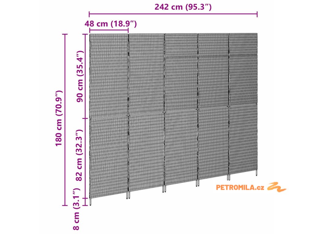 Tento skládací paraván z poly ratanu je skvělý způsob, jak si trochu přidat soukromí doma. Díky modernímu designu a čistým liniím se hodí do každého obývacího prostoru. Je vyroben z poly ratanu, který odolává UV záření, a má robustní práškově lakovanou ocel, takže dlouho vydrží. Obdélníkový tvar nabízí spoustu možností umístění, ať už chcete vytvořit útulné studio nebo vymezit pracovní prostor ve větší místnosti.