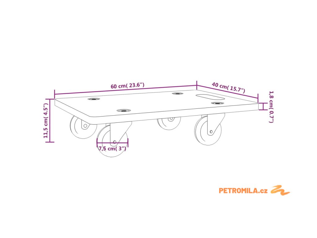 Přepravní vozíky 2 ks obdélníkové 60 x 40 x 11,5 cm 250 kg