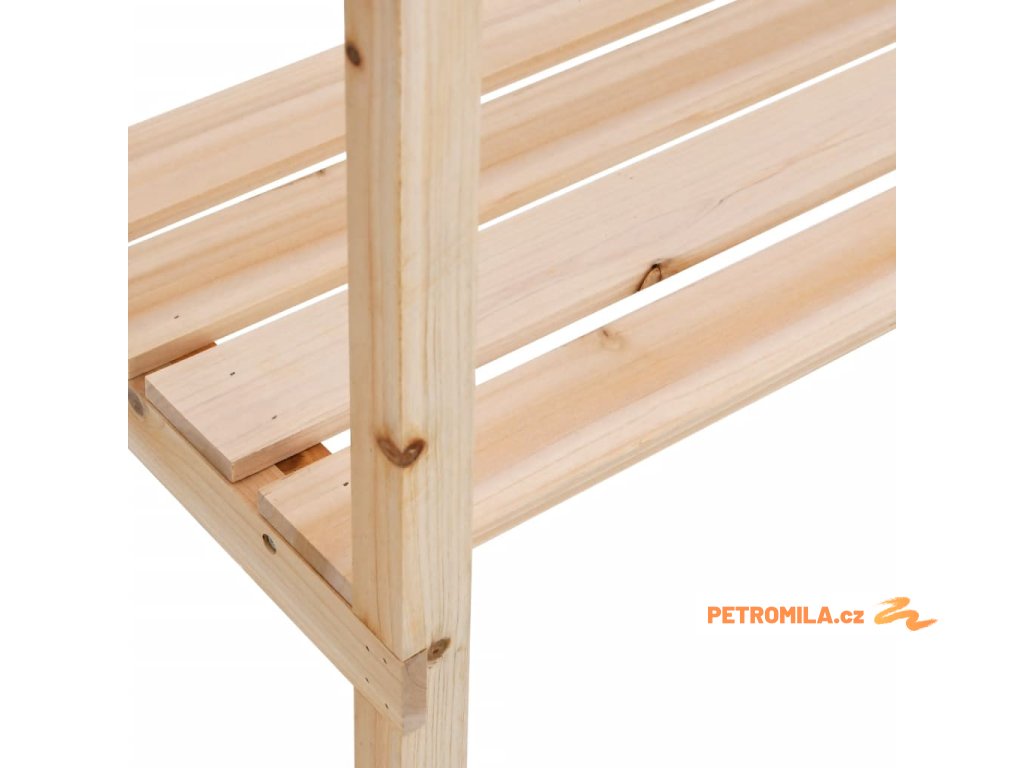 - Dostatek úložného prostoru: Dřevěný stojan na rostliny se 2 otevřenými policemi poskytuje dostatek prostoru pro související předměty, jako je drobné zahradnické nářadí, zemina, hnojiva apod.