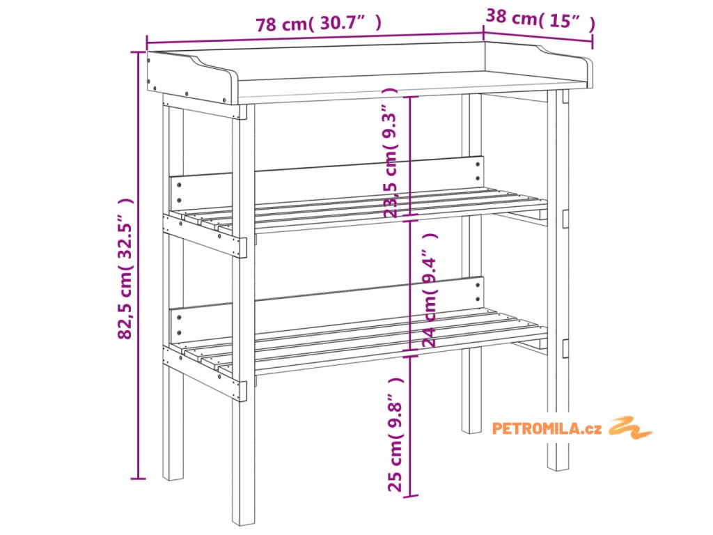Přesazovací stůl s policemi 78x38x82,5 cm masivní jedlové dřevo