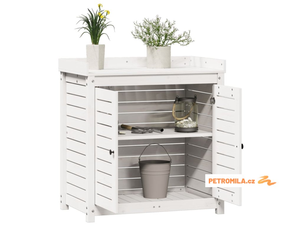 - Dostatek úložného prostoru: Pracovní stůl na přesazování s úložnou skříňkou poskytuje dostatek prostoru pro související předměty, jako je drobné zahradnické nářadí, zemina, hnojiva apod.