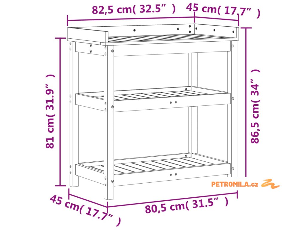 Přesazovací stůl s policemi hnědý 82,5x45x86,5 cm borové dřevo
