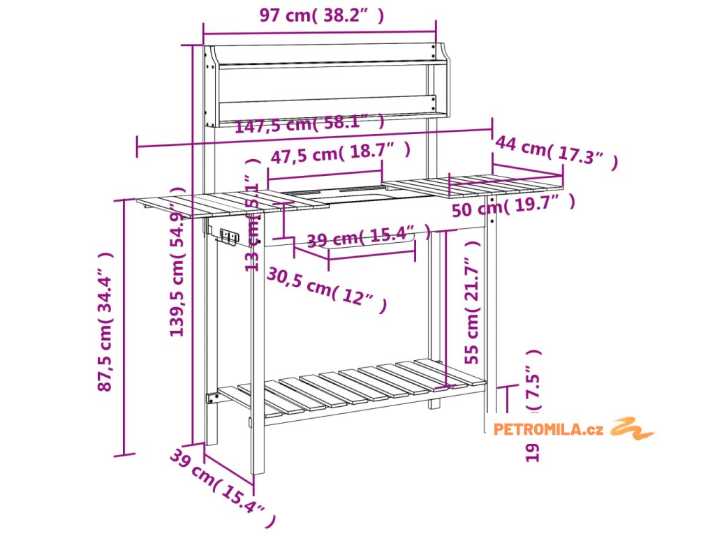 - Praktický design: Zahradní stůl na rostliny je vybaven rozkládací deskou a odnímatelným plastovým dřezem. K dřezu můžete mít volný přístup nebo jej můžete zakrýt a užívat si pevný pracovní prostor.