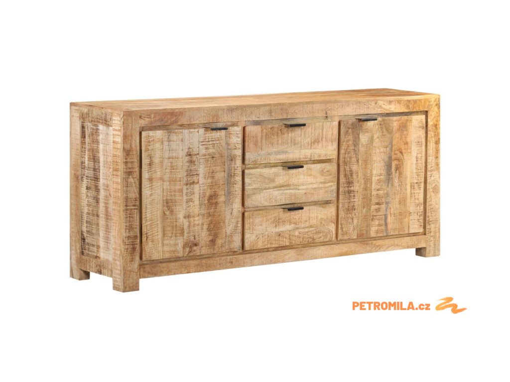 Tato odkládací skříňka je vyrobená z hrubého mangovníkového dřeva, tropického tvrdého dřeva, které snese nadměrné zatížení a odolá opotřebení v průběhu času. Prvotřídní řemeslné zpracování a nádherná struktura dřeva je mírně odlišná na každém kusu nábytku, takže se jednotlivé kusy lehce odlišují. Skříňka se 2 dvířky a 3 zásuvkami nabízí spoustu místa, kde můžete uschovat knihy, časopisy a další předměty dobře organizované a na dosah ruky. Její robustní horní část je navíc ideální pro umístění dekorativních předmětů, jako jsou vázy a fotorámečky.